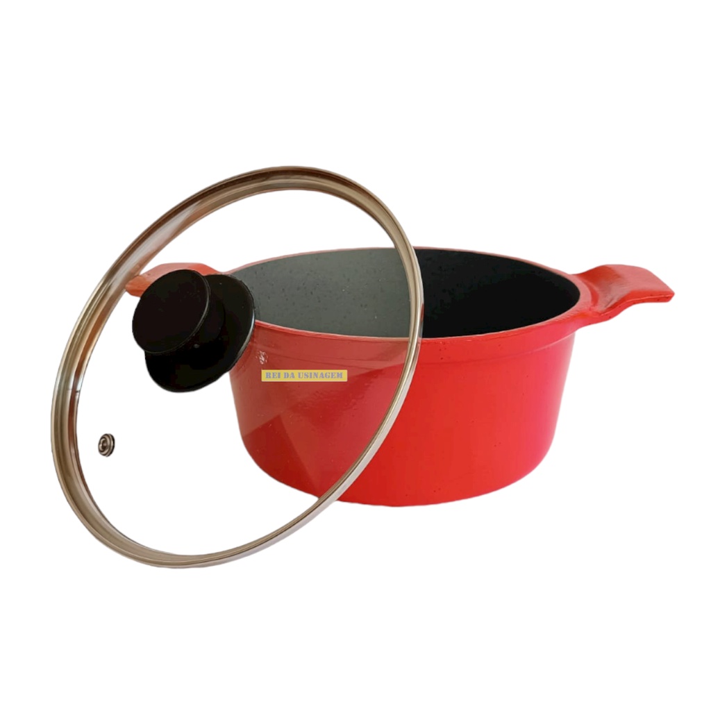 Jogo De Panelas Antiaderente Cerâmica 5 Peças Vermelho Liso com Cerâmica Cinza Caçarola 16 a 24 Alça Inteiriça Alumínio Fundido