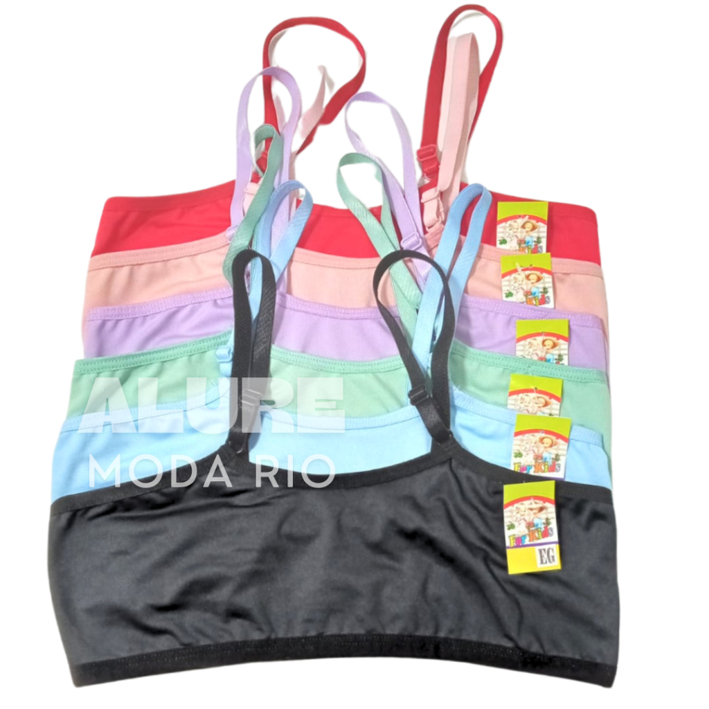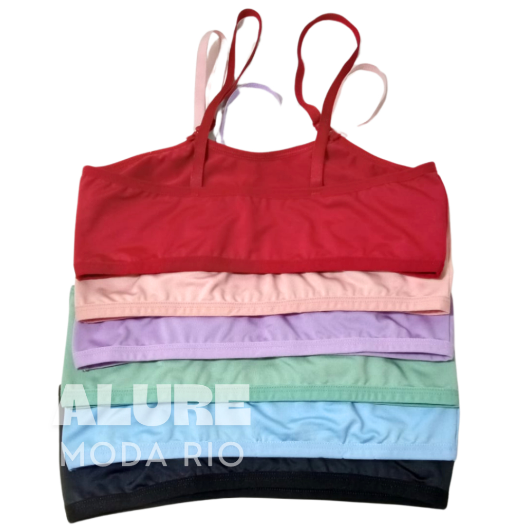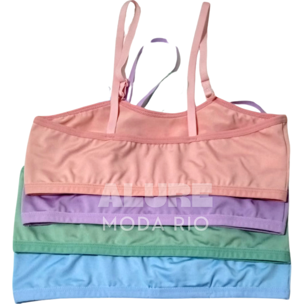 Kit 4 Tops Infantil Reforçado Alça Regulável 8 a 12 anos Microfibra Lisa