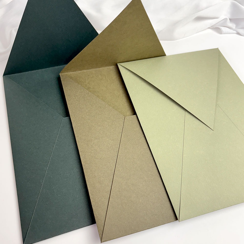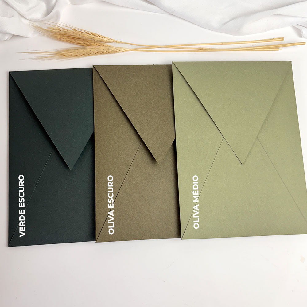 ENVELOPE PARA CONVITE DE CASAMENTO BICO VERTICAL 16x22 cm VERDE OLIVA - ESCURO