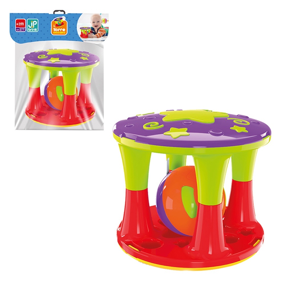 Bolinha Chocalho Didática para Bebe Colorida + Torre Chocalho com Bolinha para Infantil Pedagógica coordenação motora