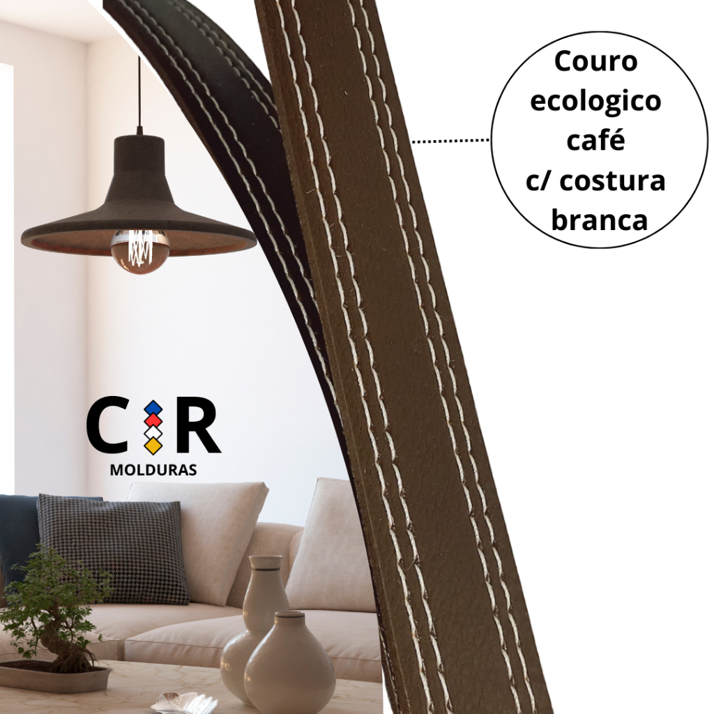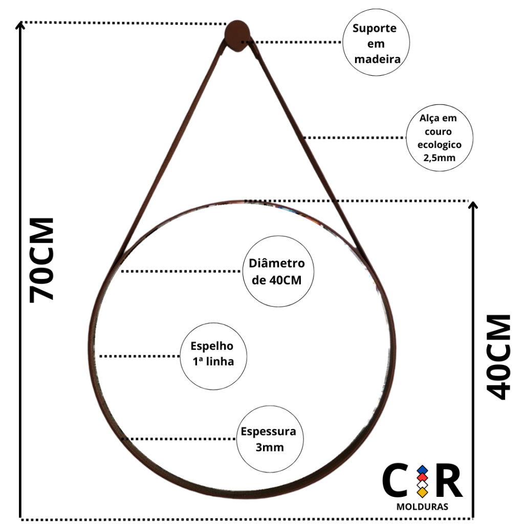 Espelho Decorativo Redondo 40cm Adnet Suspenso C/ Alça Couro Ecológico + 5 Anos de garantia