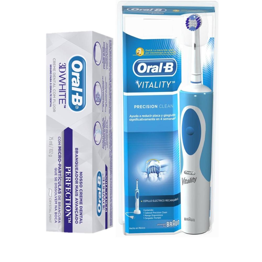 Kit Escova Elétrica Oral-B Vitality D12 220v + Creme Dental Oral-B 3D White Perfection 102g