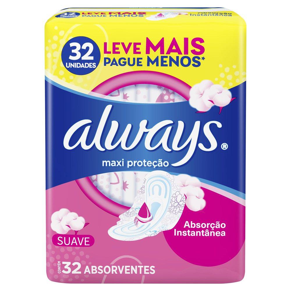 Absorvente Always Proteção Total Suave Com Abas - 32 unidades