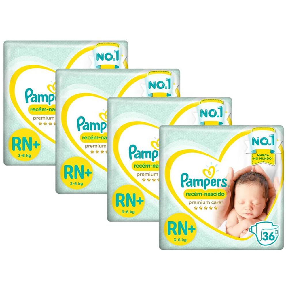 Kit Fralda Pampers Premium Care Recém Nascido Plus com 144 unidades - 3 à 6 Kg