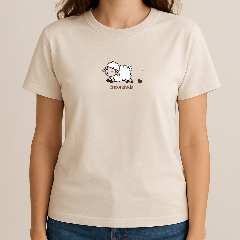 Camiseta T-Shirt 100% algodão Feminina Baby Look Moda Evangélica "Ovelha Encontrada"