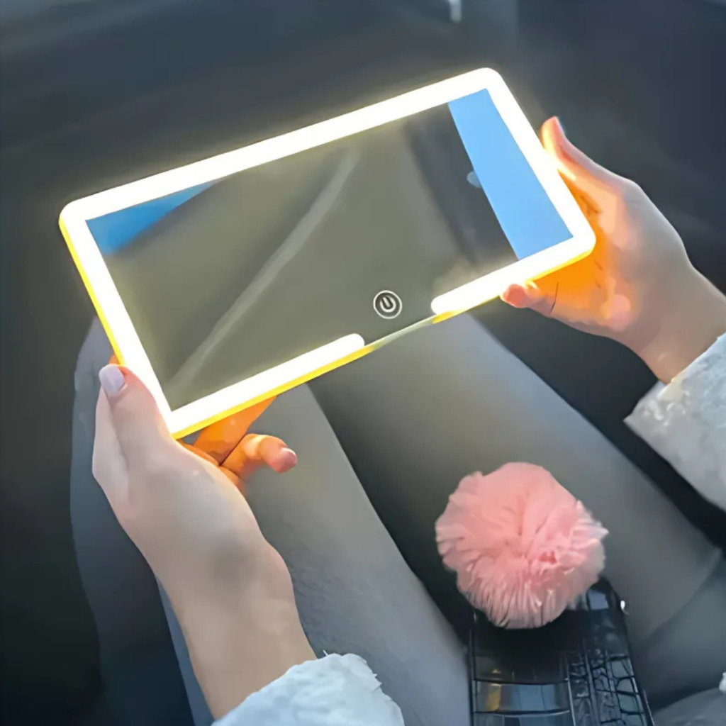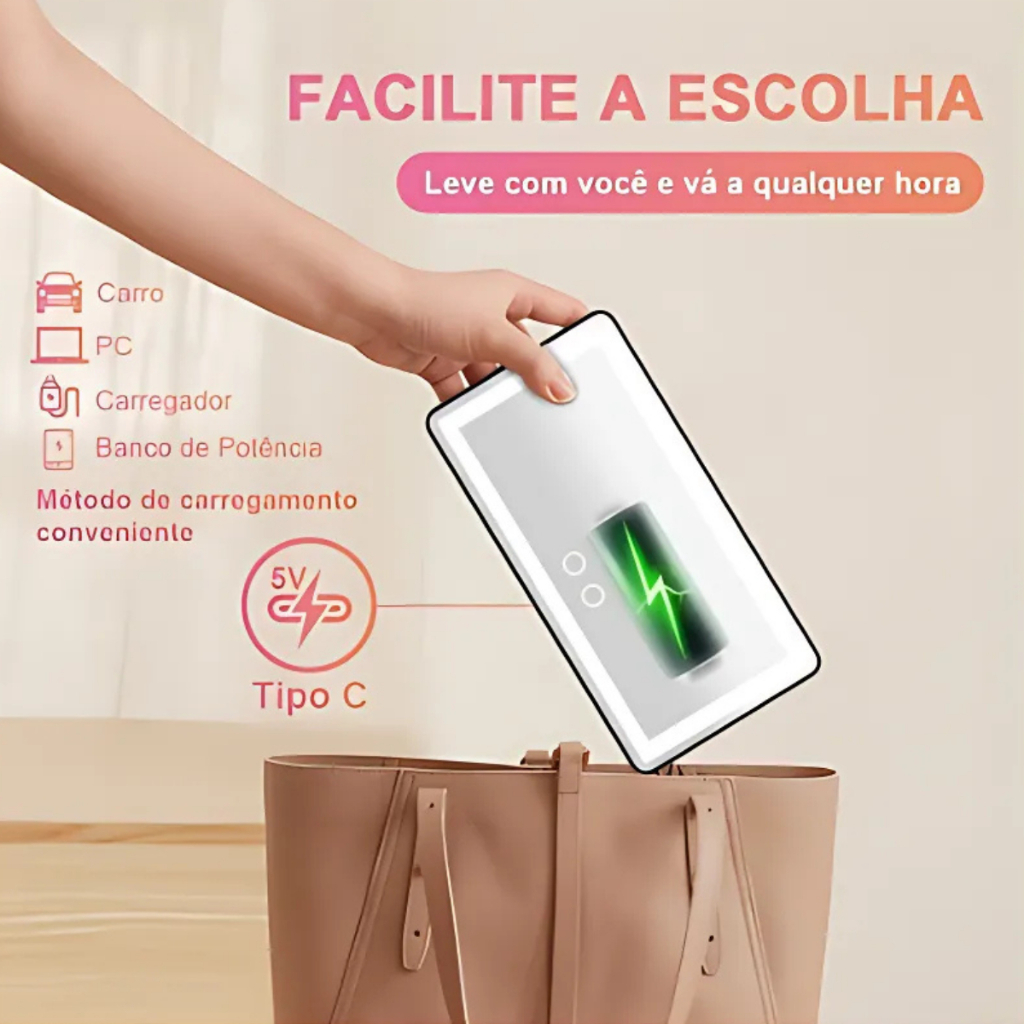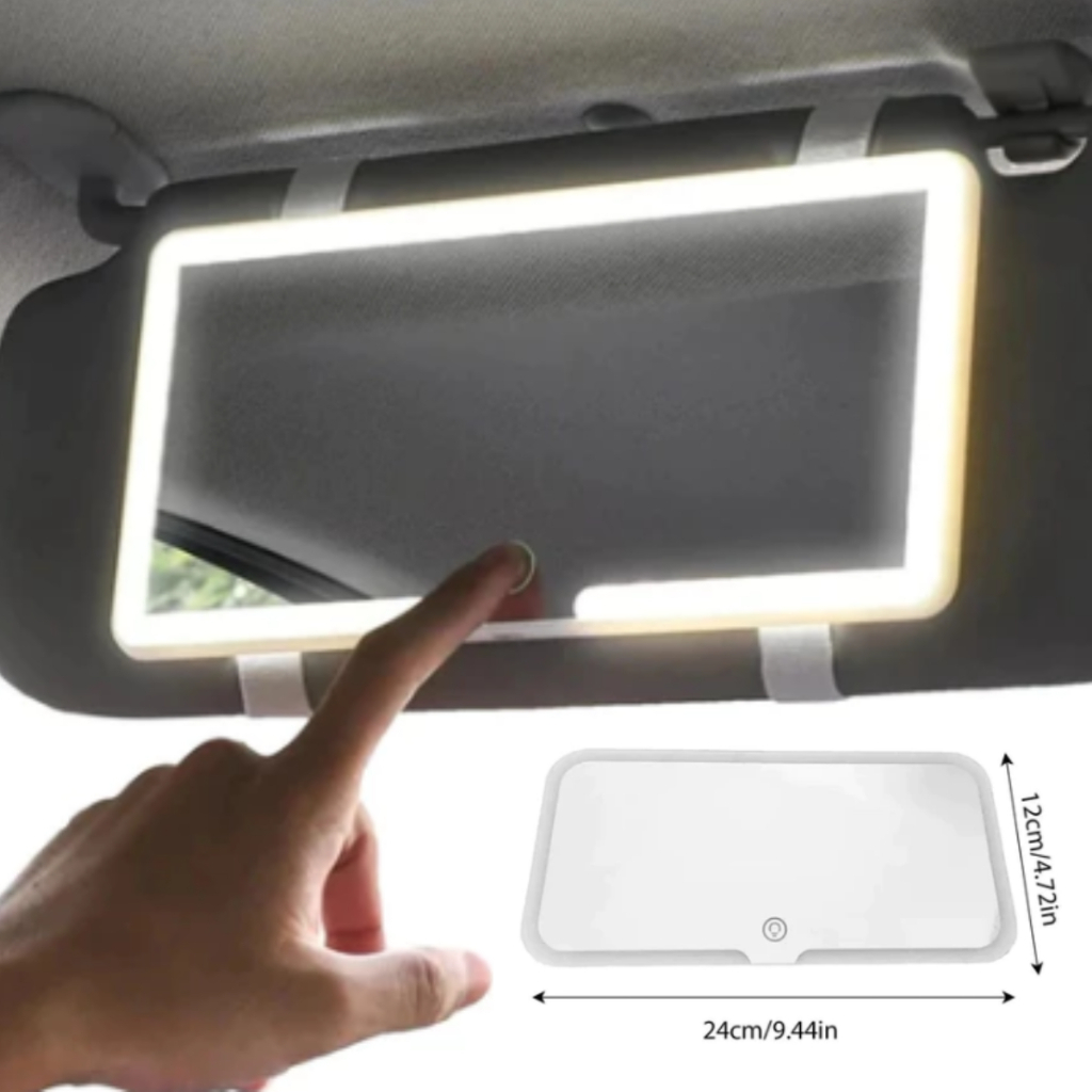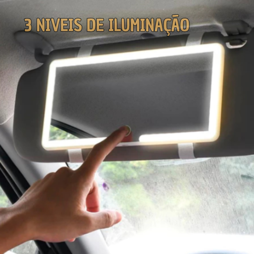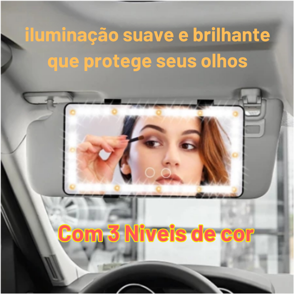 Espelho LED Para Quebra Sol De Carro Com 3 Modos de Led Recarregável Touch Luz Branco Quente Frio