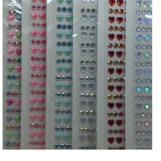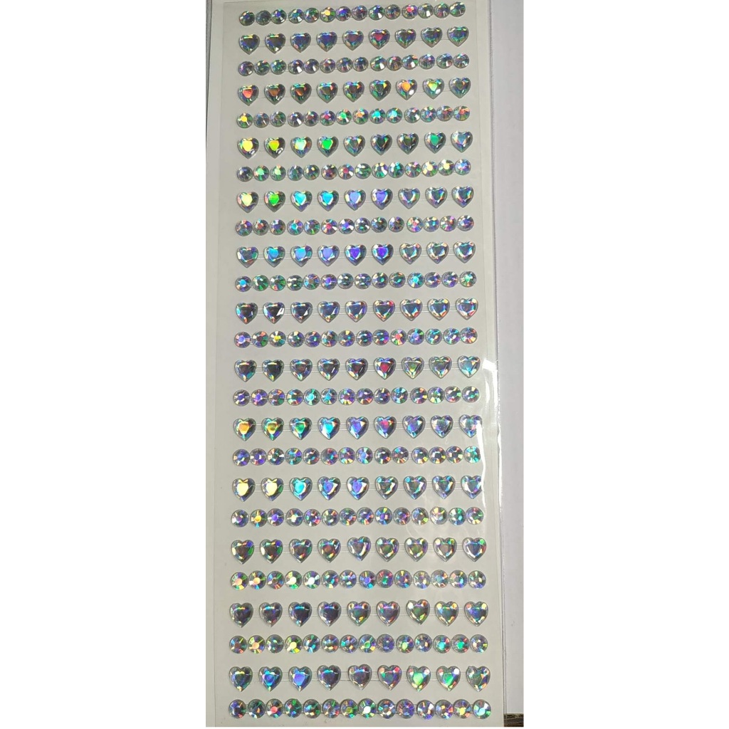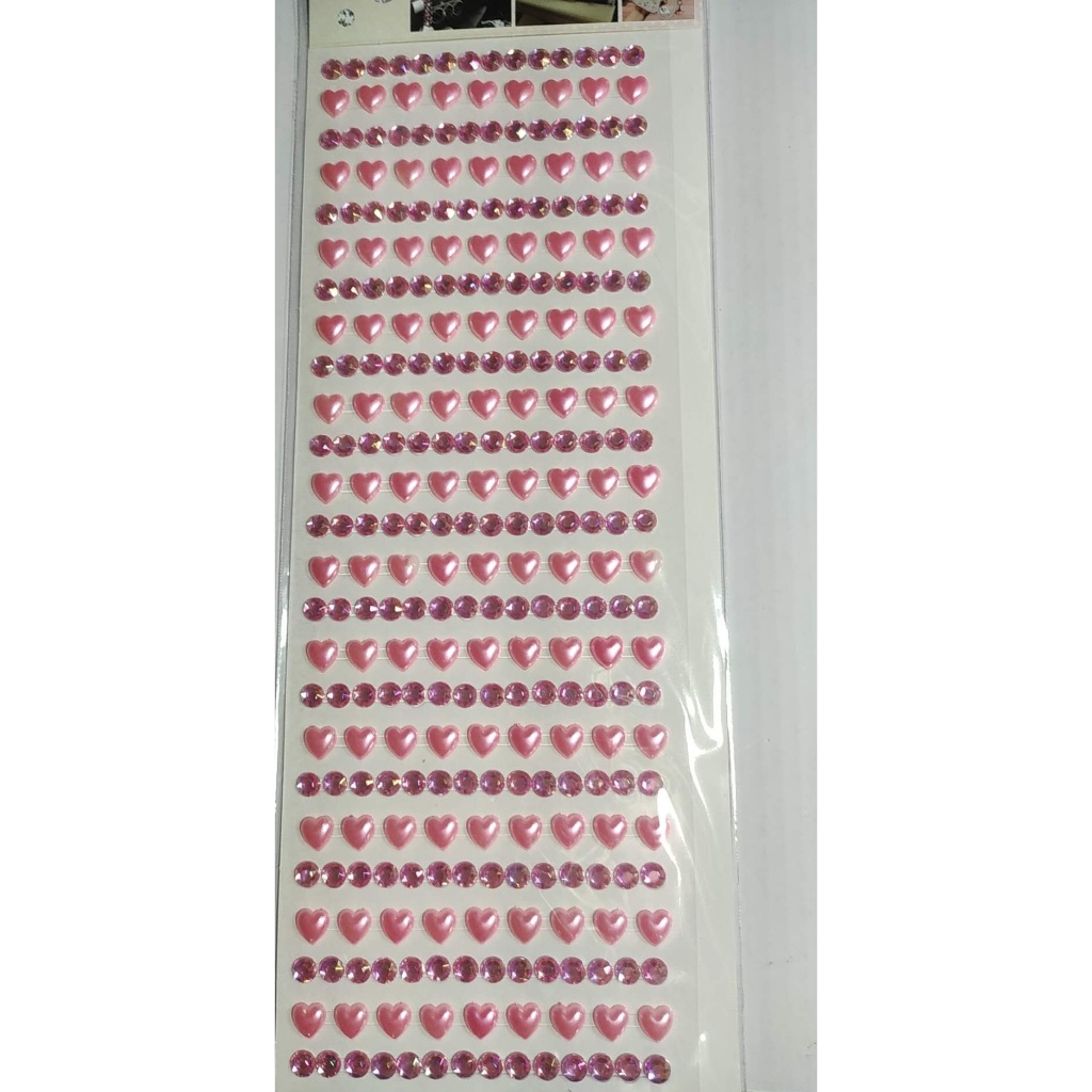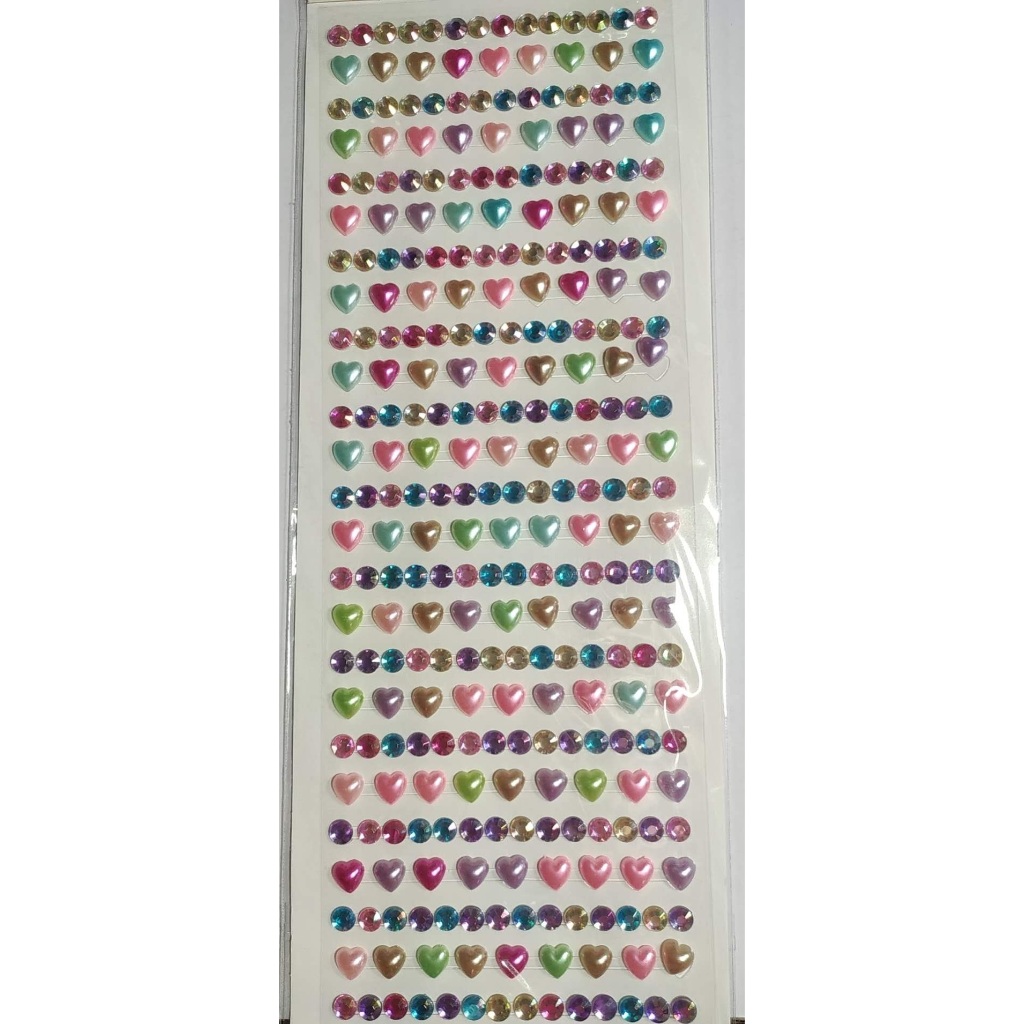 kit 1 /3 Cartela de Adesivo Coração e Strass Cartela Adesivo Strass Decoração Artesanato