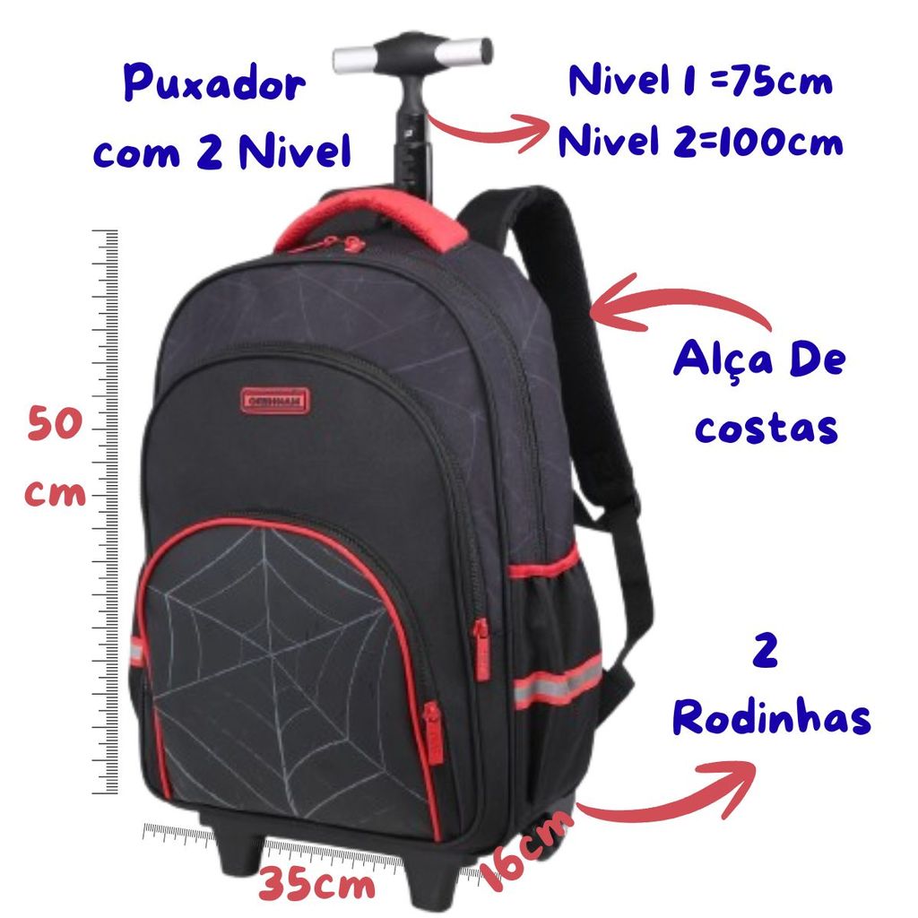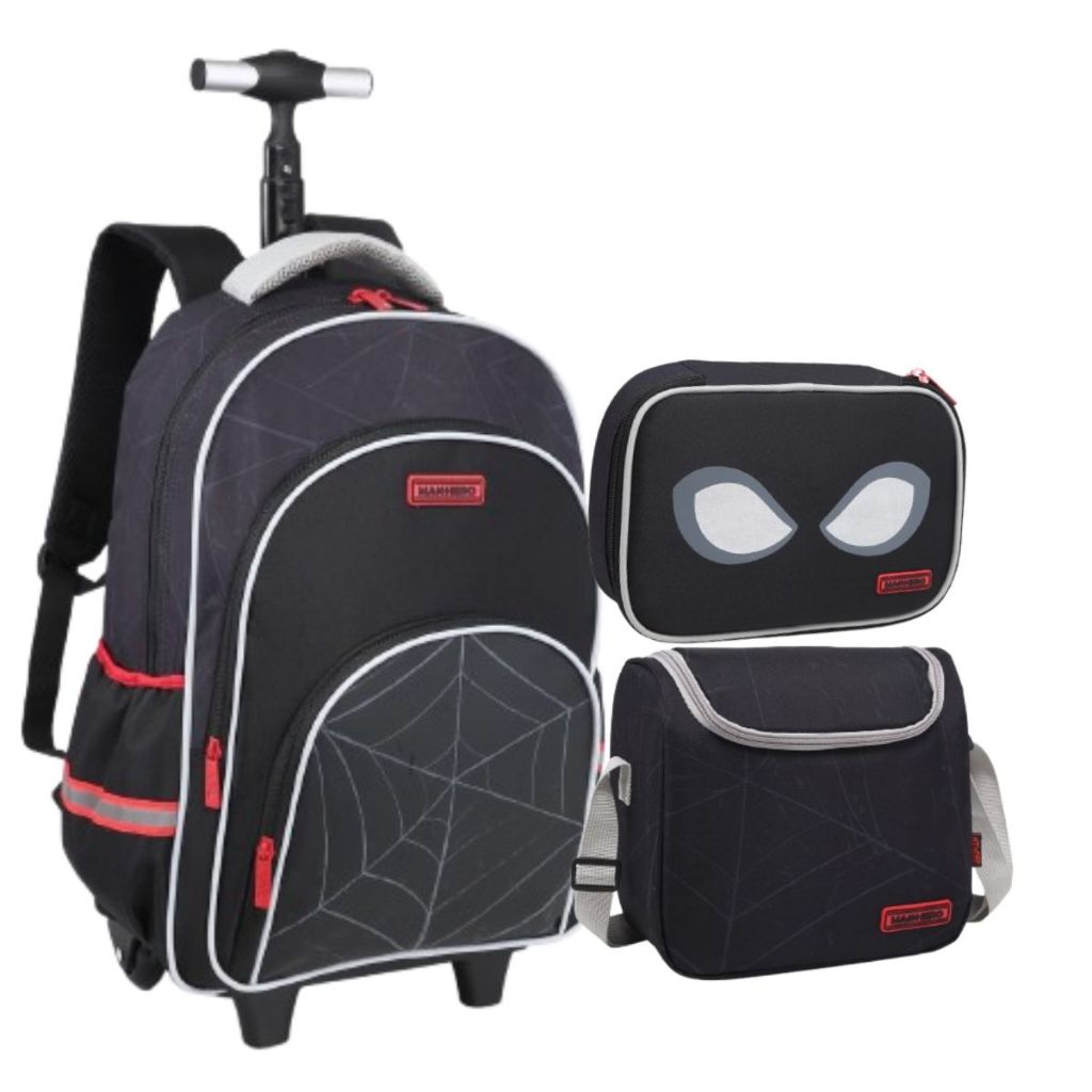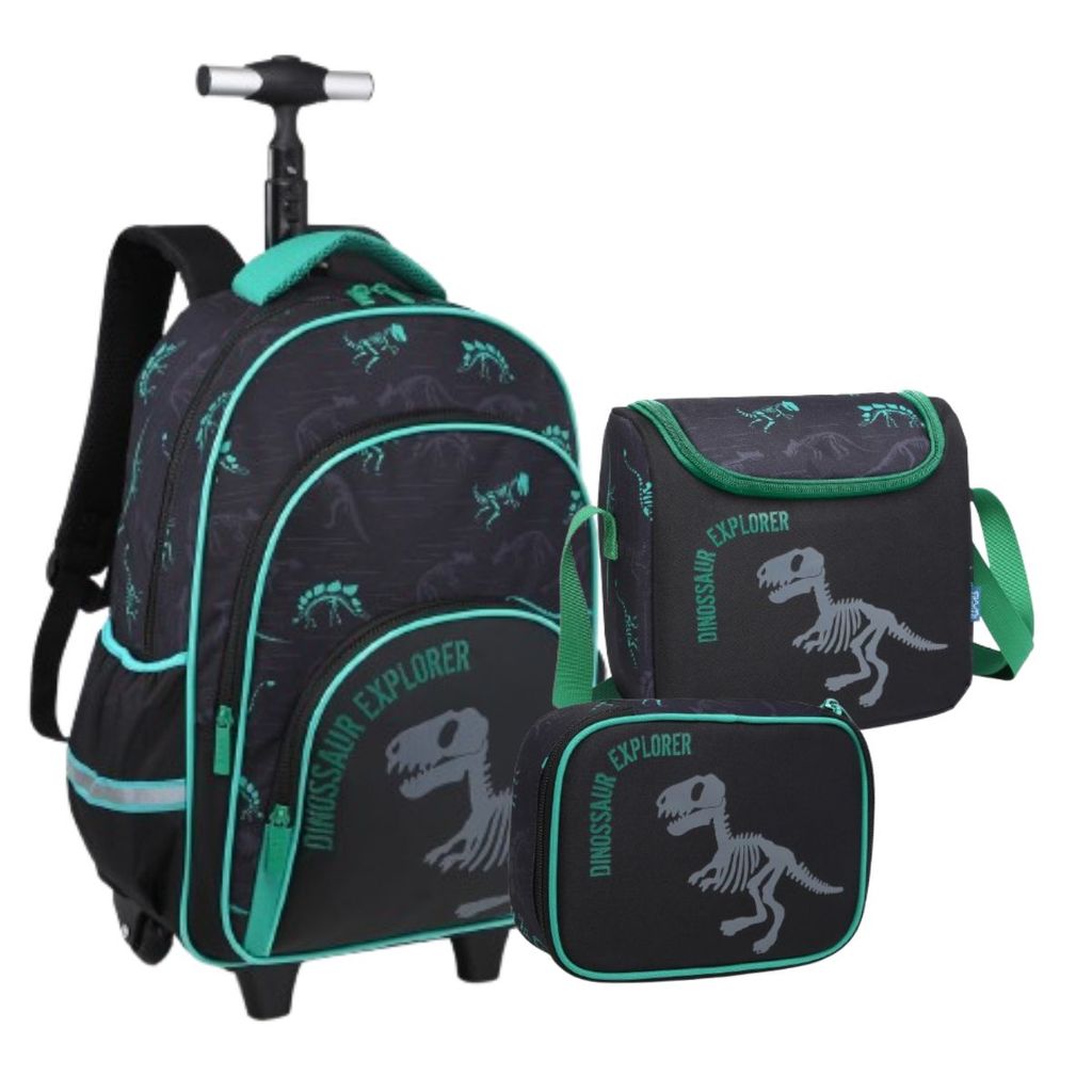 Mochila Rodinha Infantil Menino Kit 3 Peças Escolar Grande