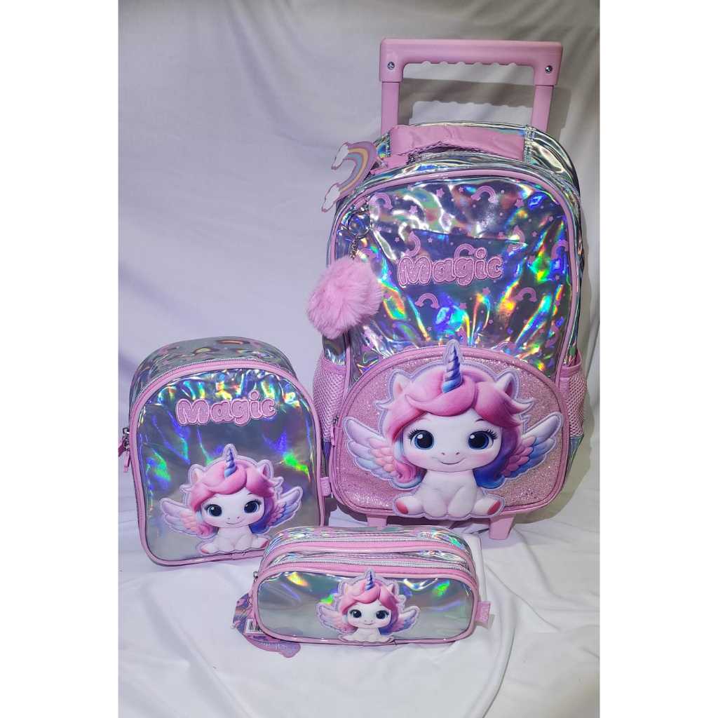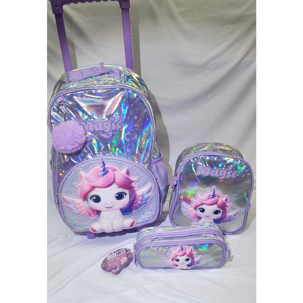 Kit Mochila Rodinha Unicónio C/ Estojo E Lancheira Escolar M