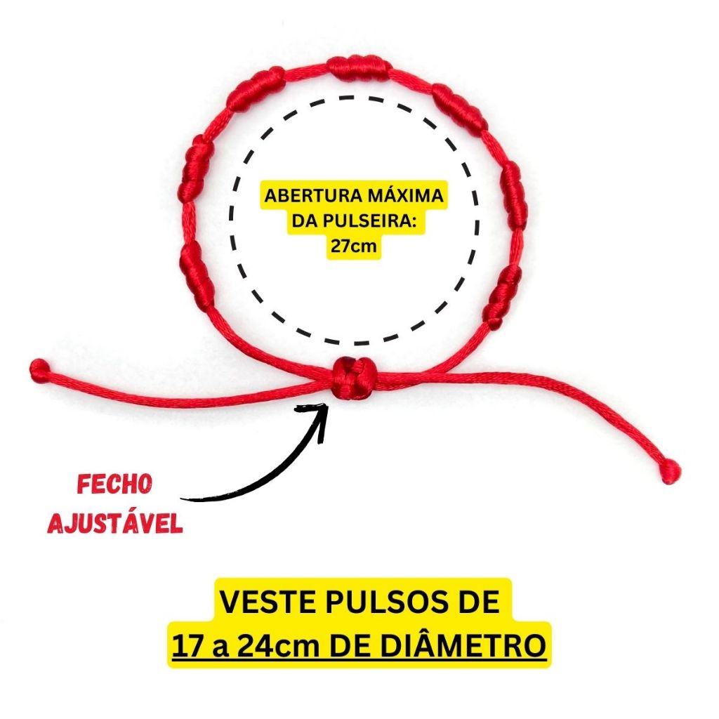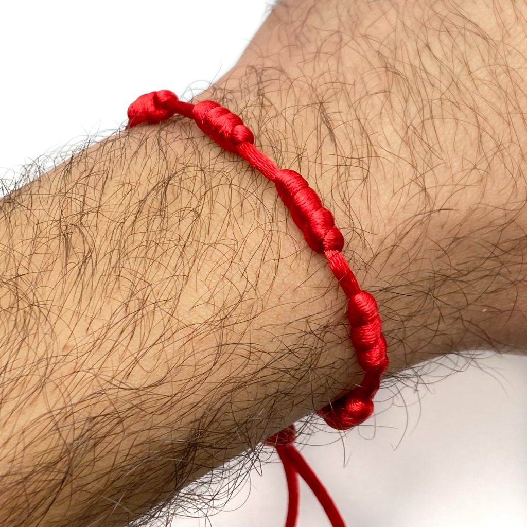 Kit 3 Pulseiras Vermelha 7 Sete Nós Cabala Proteção