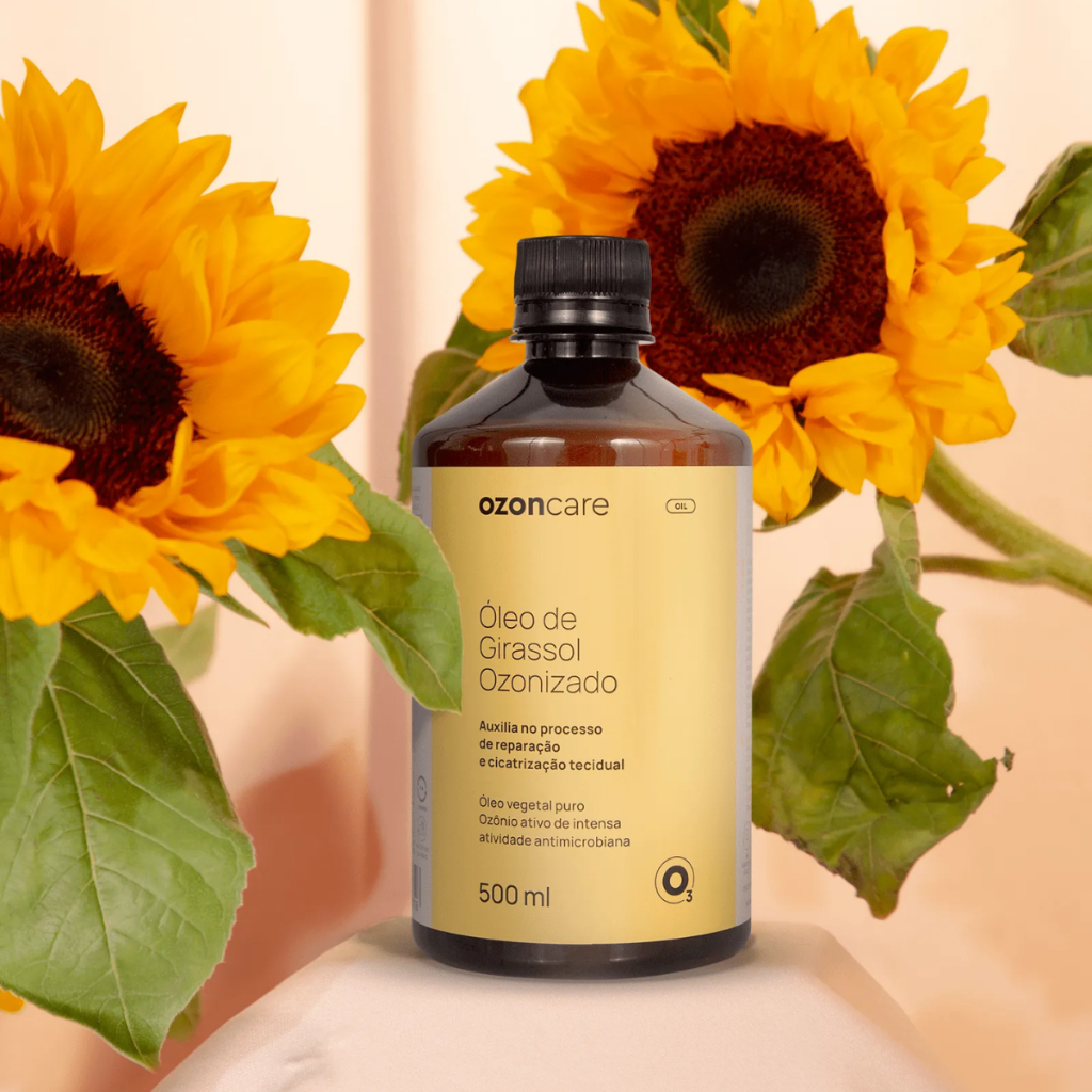 Óleo De Girassol Ozonizado 1L Defesa Da Pele Regeneração Cicatrização Ozonio 500ml