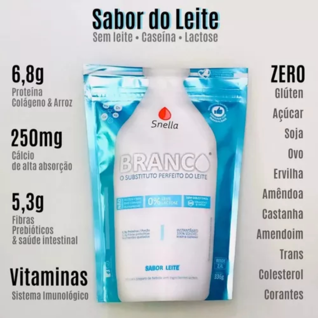 Kit 2 Leite em Pó O Branco APLV Sem Lactose Caseína Glúten Com Fibras 336g Receitas Snella Arroz