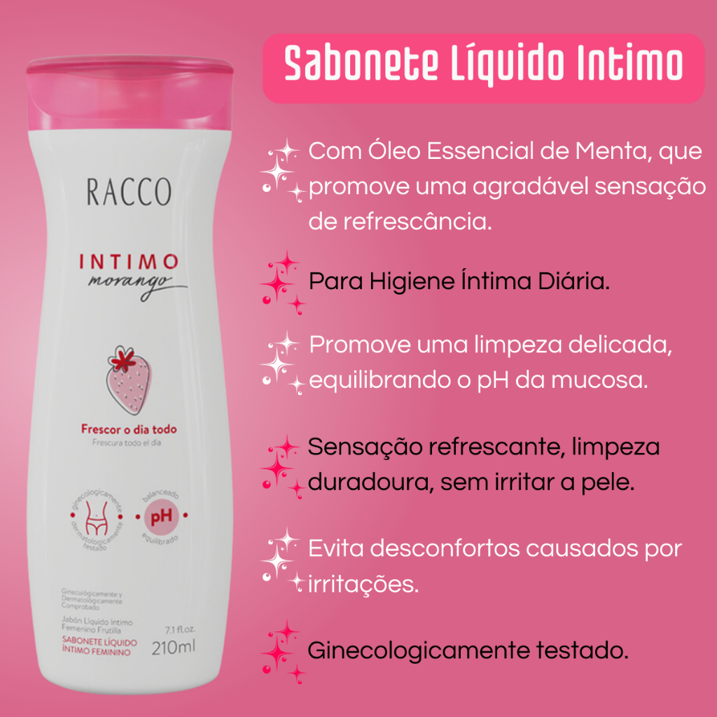Sabonete Intimo Feminino Morango Racco 210ml Liquido Íntimo Higiene Intima Proteção Feminina