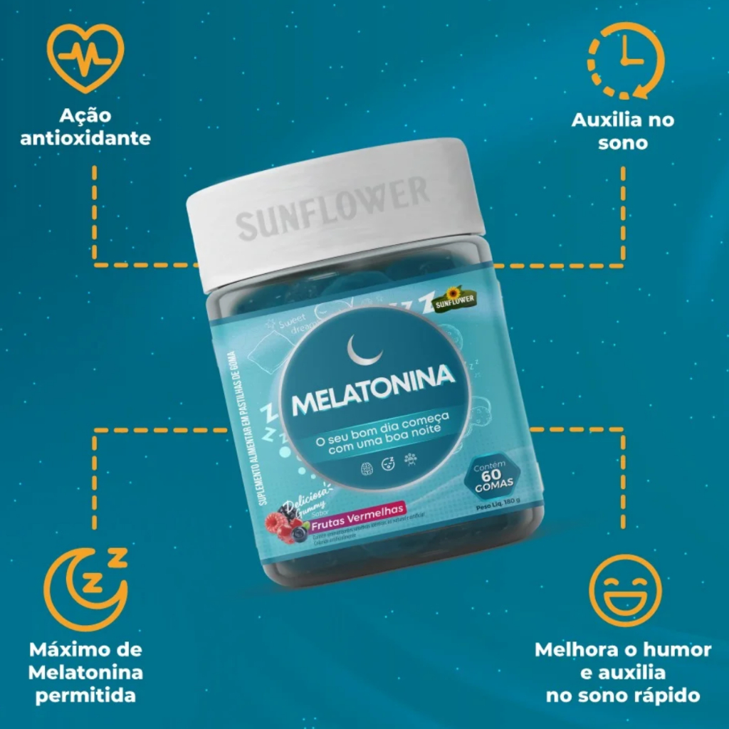 Kit 2 Melatonina Em Goma Frutas Vermelhas 120 Gomas Melato Gummy Para Sono Insônia Nutri Sunflower