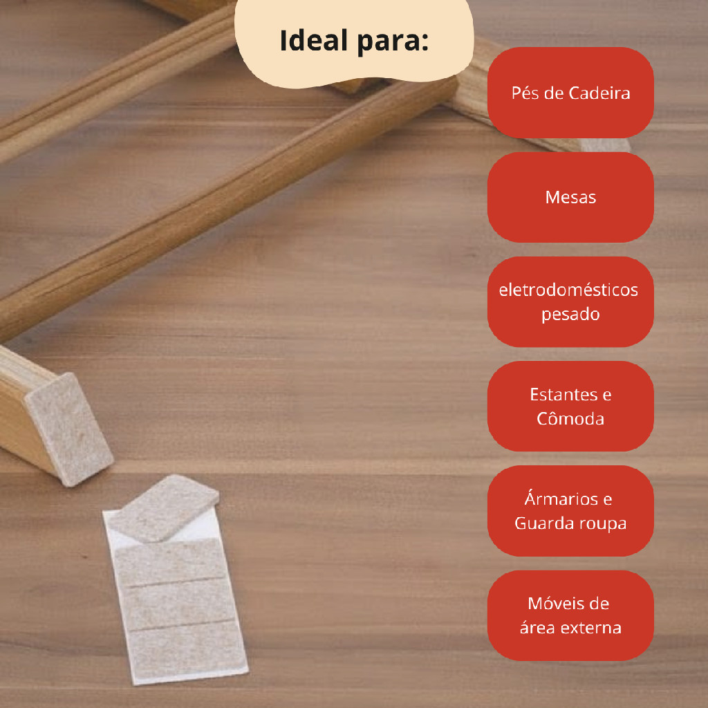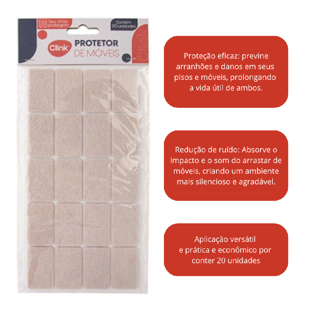 Protetor de Móveis Feltro Retangular Auto Adesivo 20 Peças Antiderrapante para Cadeiras Mesas