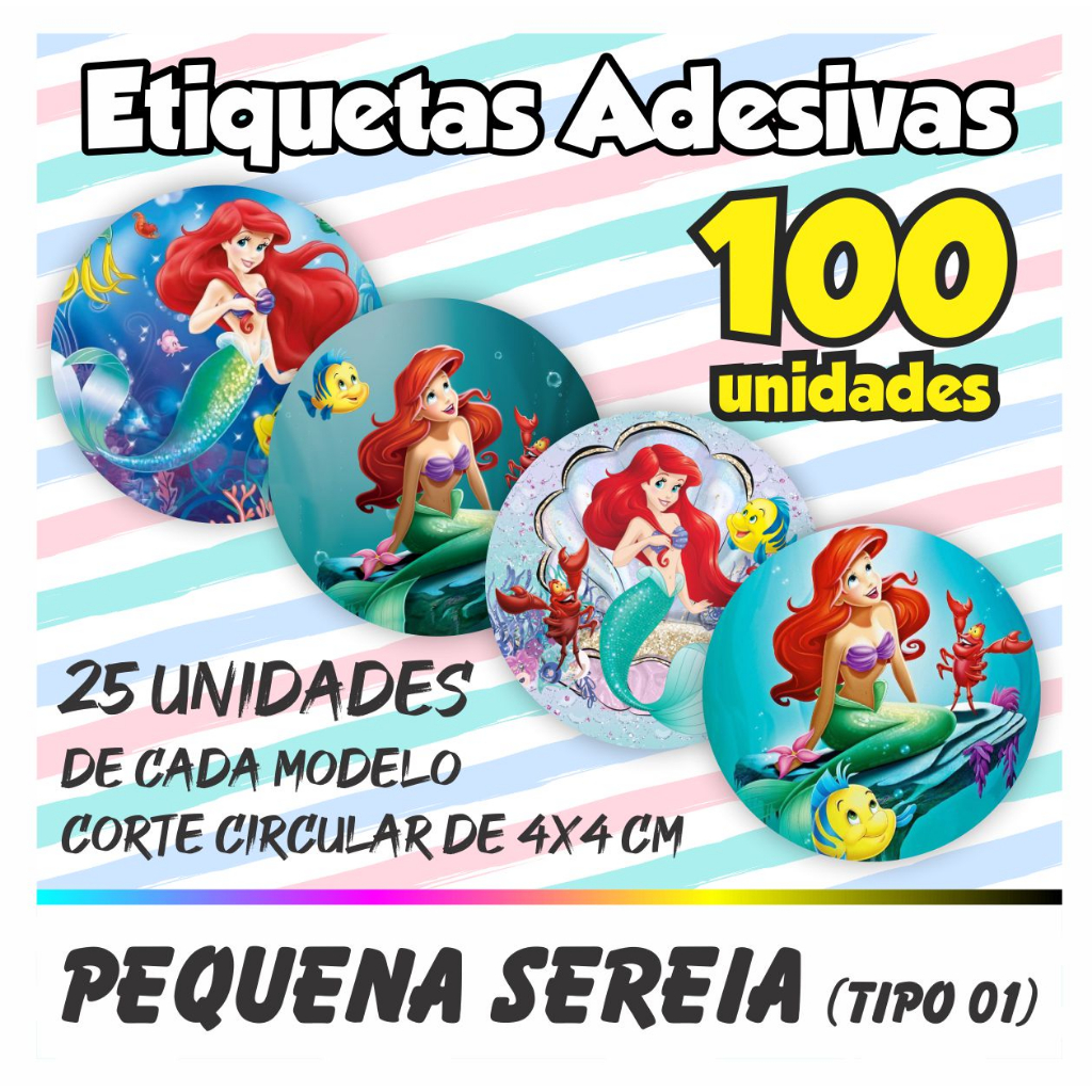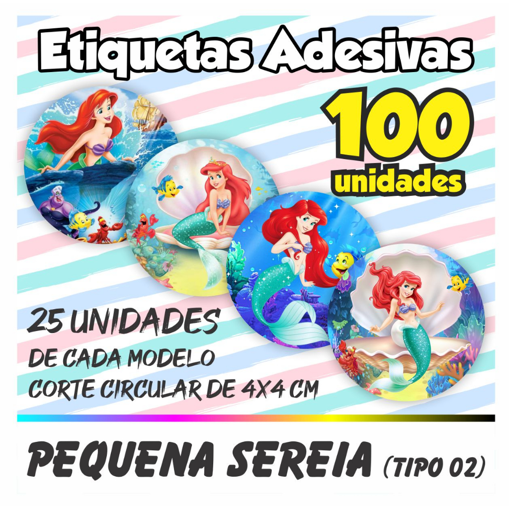 Kit De 100 Etiquetas Adesivas Ariel, Pequena Sereia