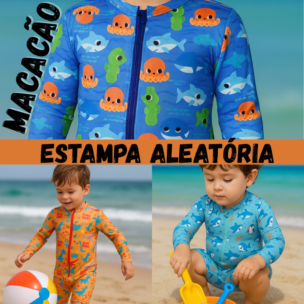 Macaquinho Infantil Menino Manga Longa Proteção Solar Queima de Estoque Envio Aleatório