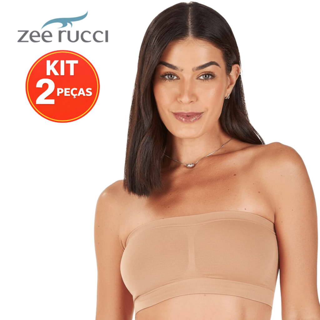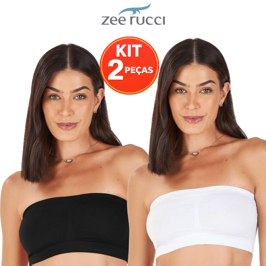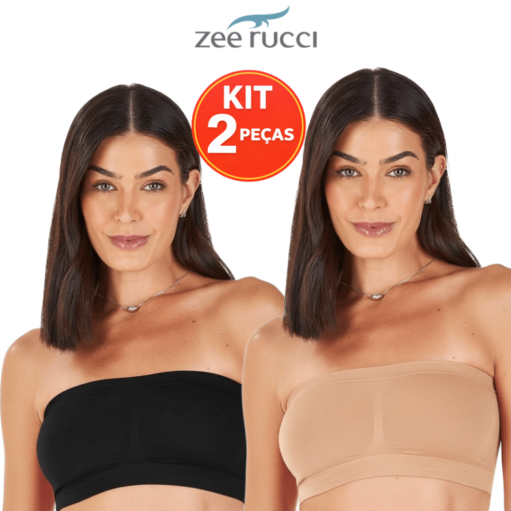 KIT 2 Top Faixa Sem Bojo Zee Rucci Tomara que Caia Microfibra Poliamida Sem Costura