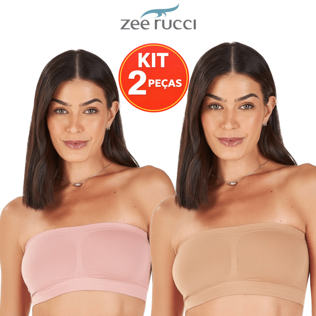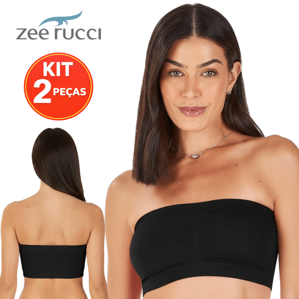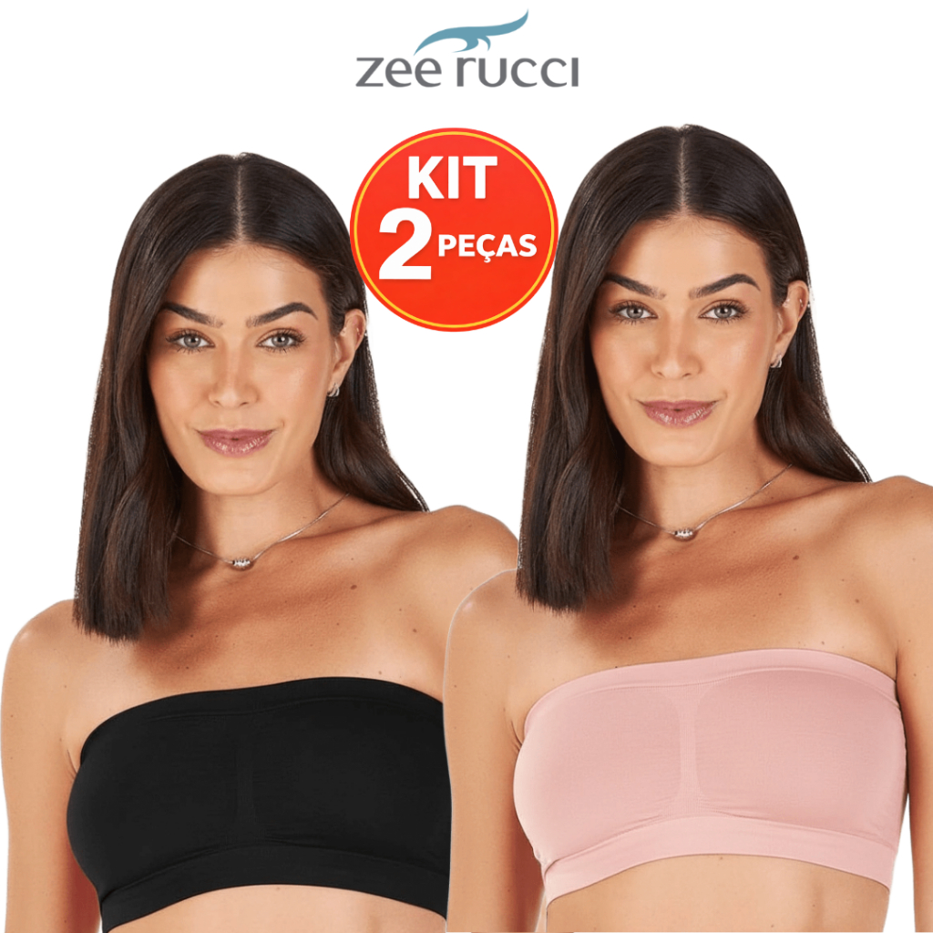 KIT 2 Top Faixa Sem Bojo Zee Rucci Tomara que Caia Microfibra Poliamida Sem Costura