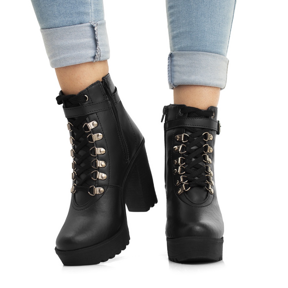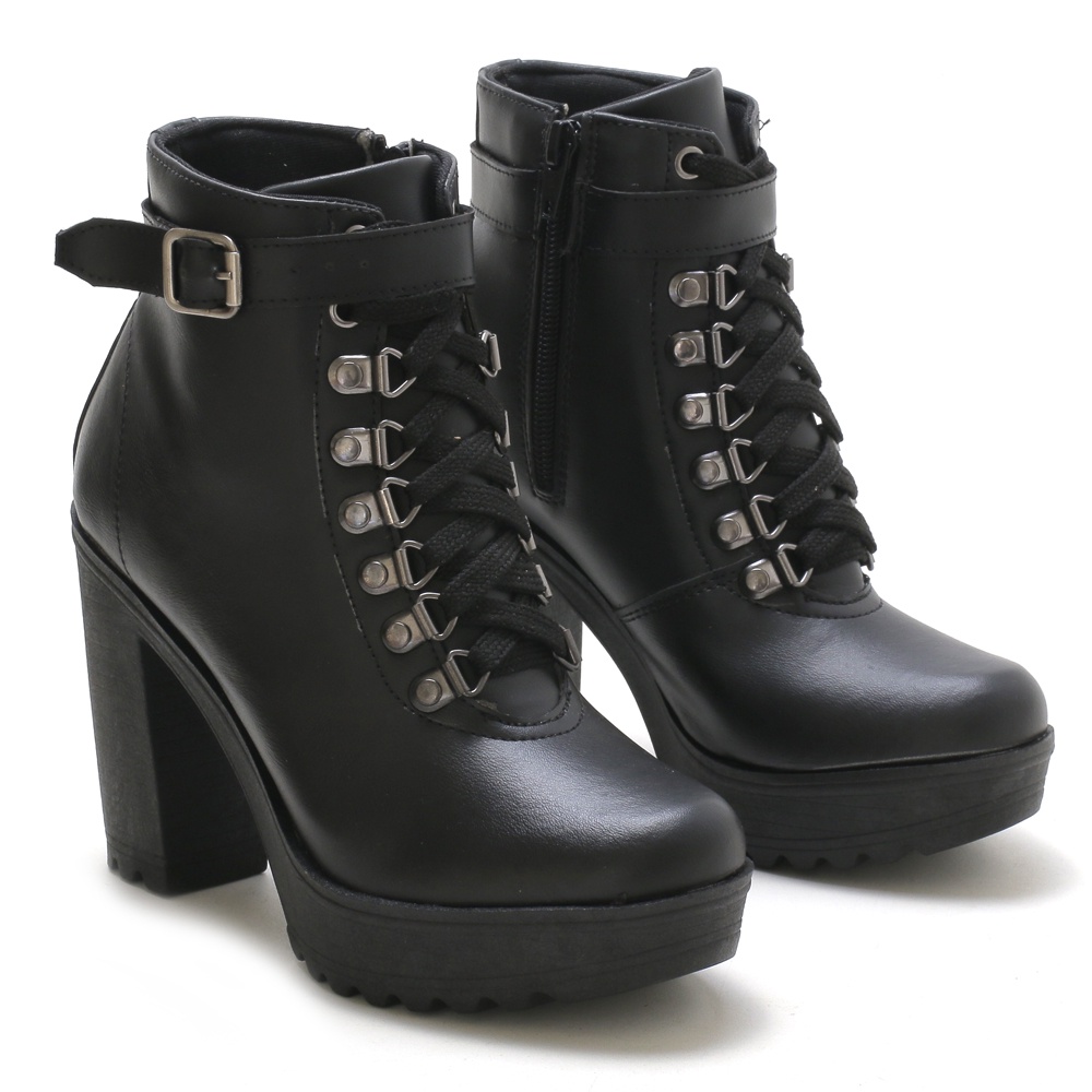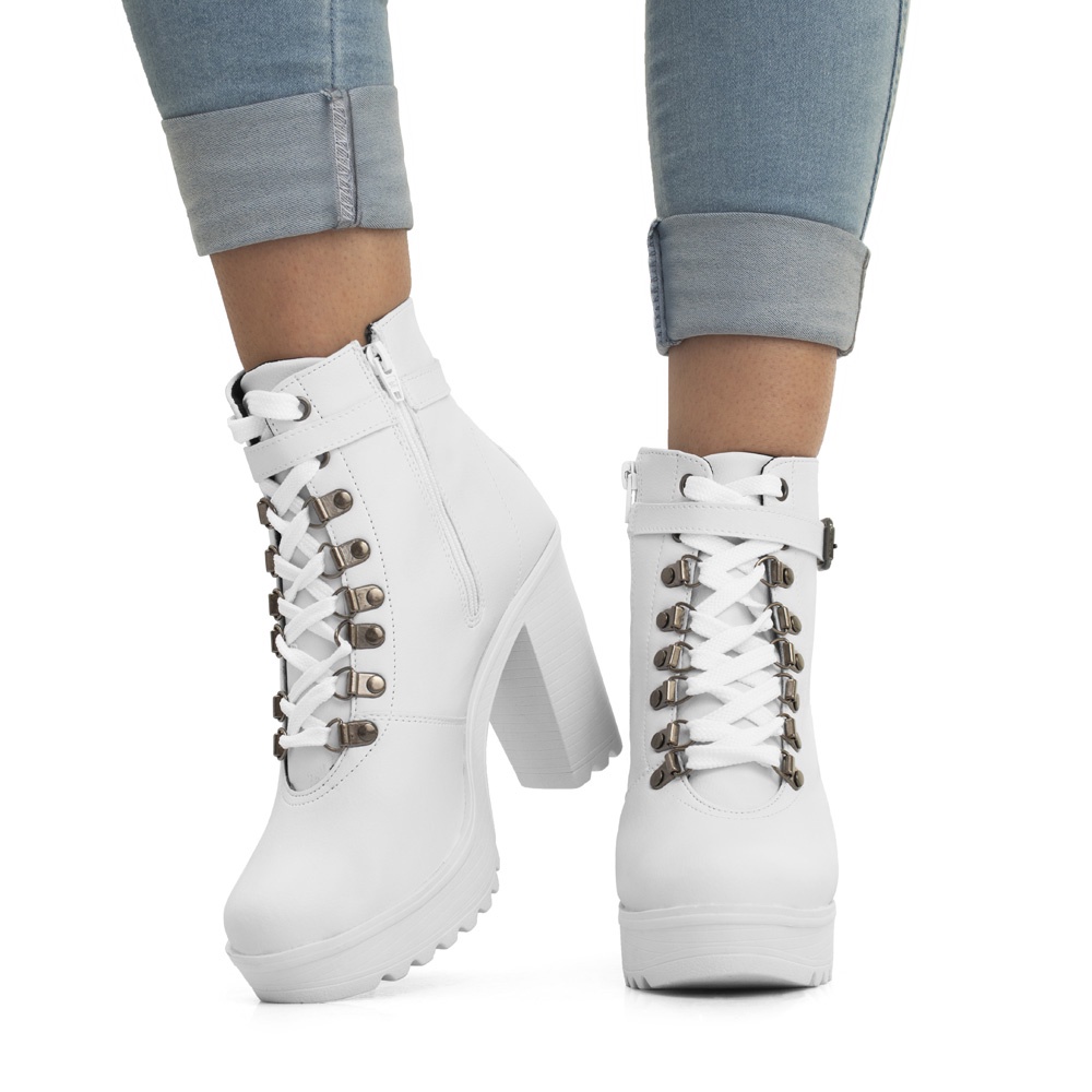 Bota Feminina Coturno Tratorada Salto Alto 9 cm Moda Branco
