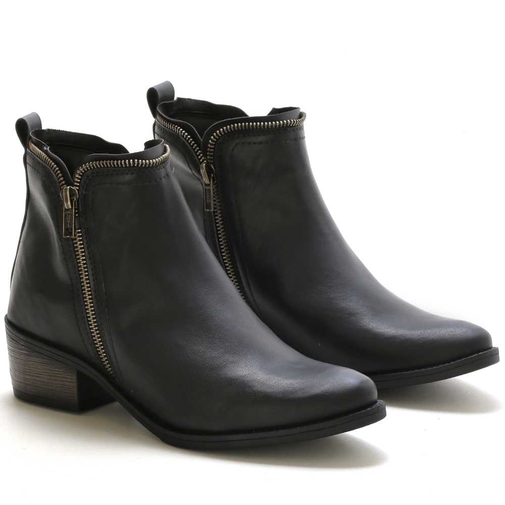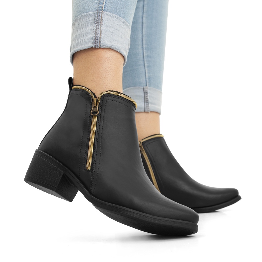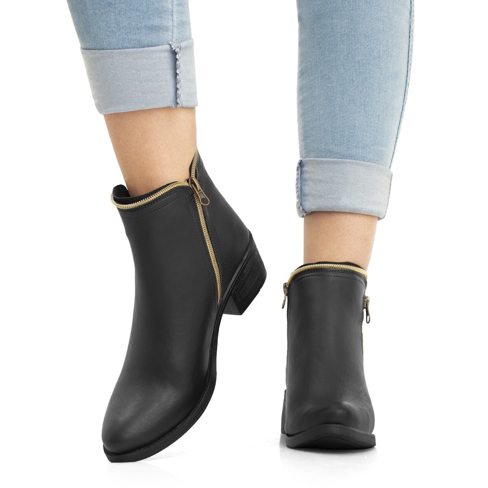 Bota Feminina Cano Curto Salto 4cm Ziper Preto