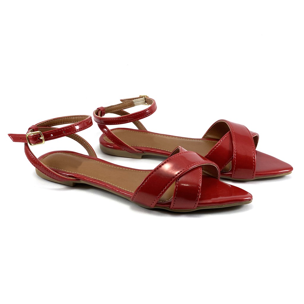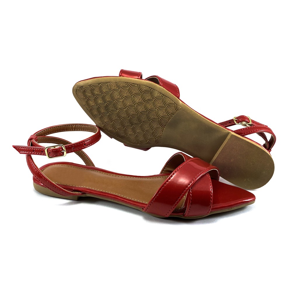 Sandália Feminina Rasteirinha Vermelho Bico Folha