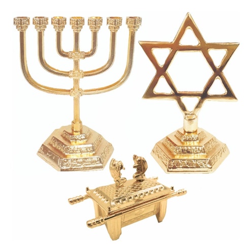 Candelabro Menorah + Estrela De Davi + Arca Da Aliança Ouro