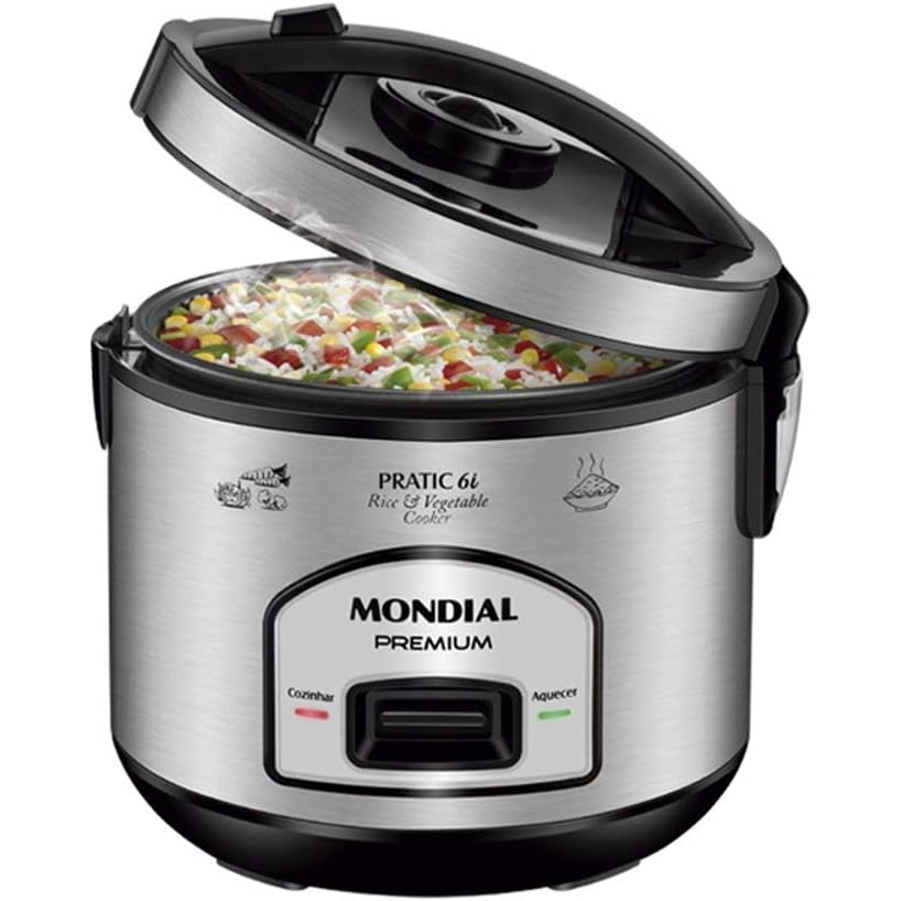 Panela Elétrica De Arroz Mondial 6 Litros + Cesto à Vapor PE-43 Preto/Inox