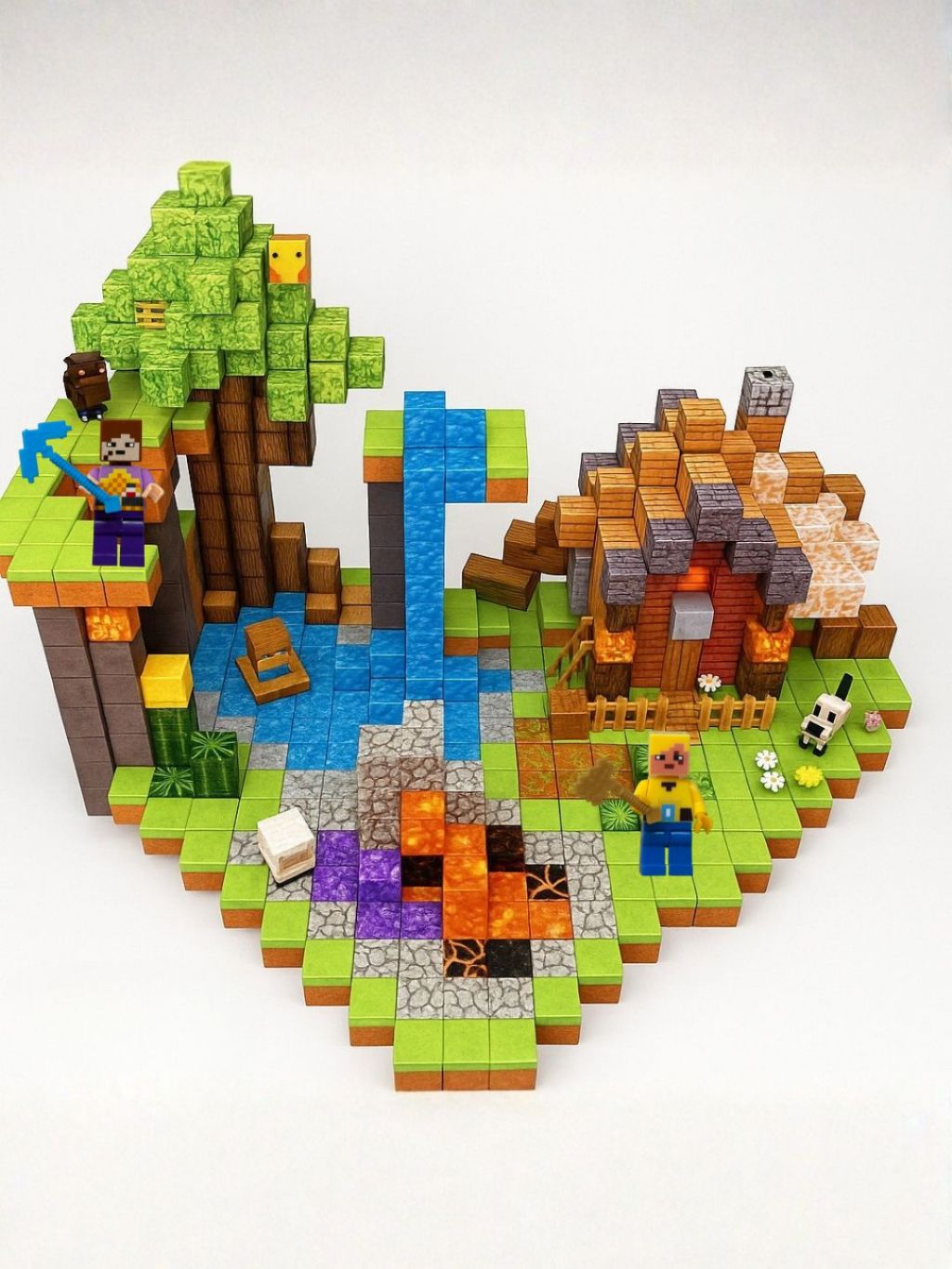 Blocos Magnéticos Mine Arte 103 Peças C 2 Bonecos Aventura Pixelad Meu Mundo Brinquedo Criativo Construção