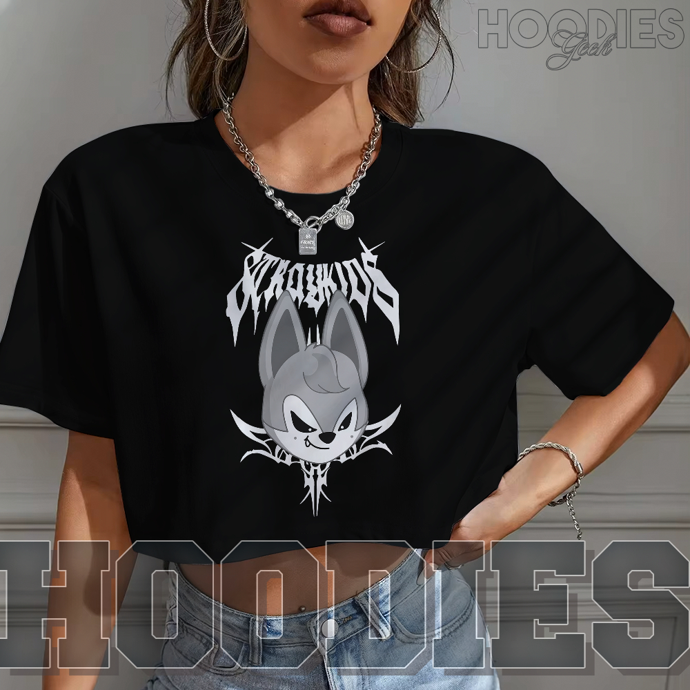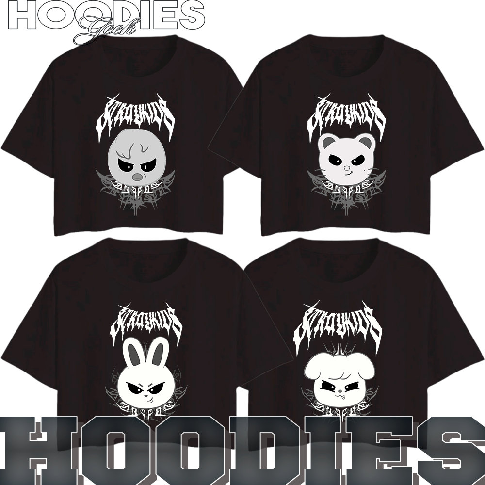Blusa Cropped Feminino OVERSIZED Stray Kids Mascotes Gotico Integrantes Fofo Escolha Sua Estampa