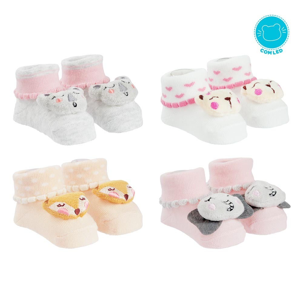 Meia Bichinho Pelucia Divertida Led Pimpolho Bebe Menina Recem Nascido 0 a 15 Enxoval Presente