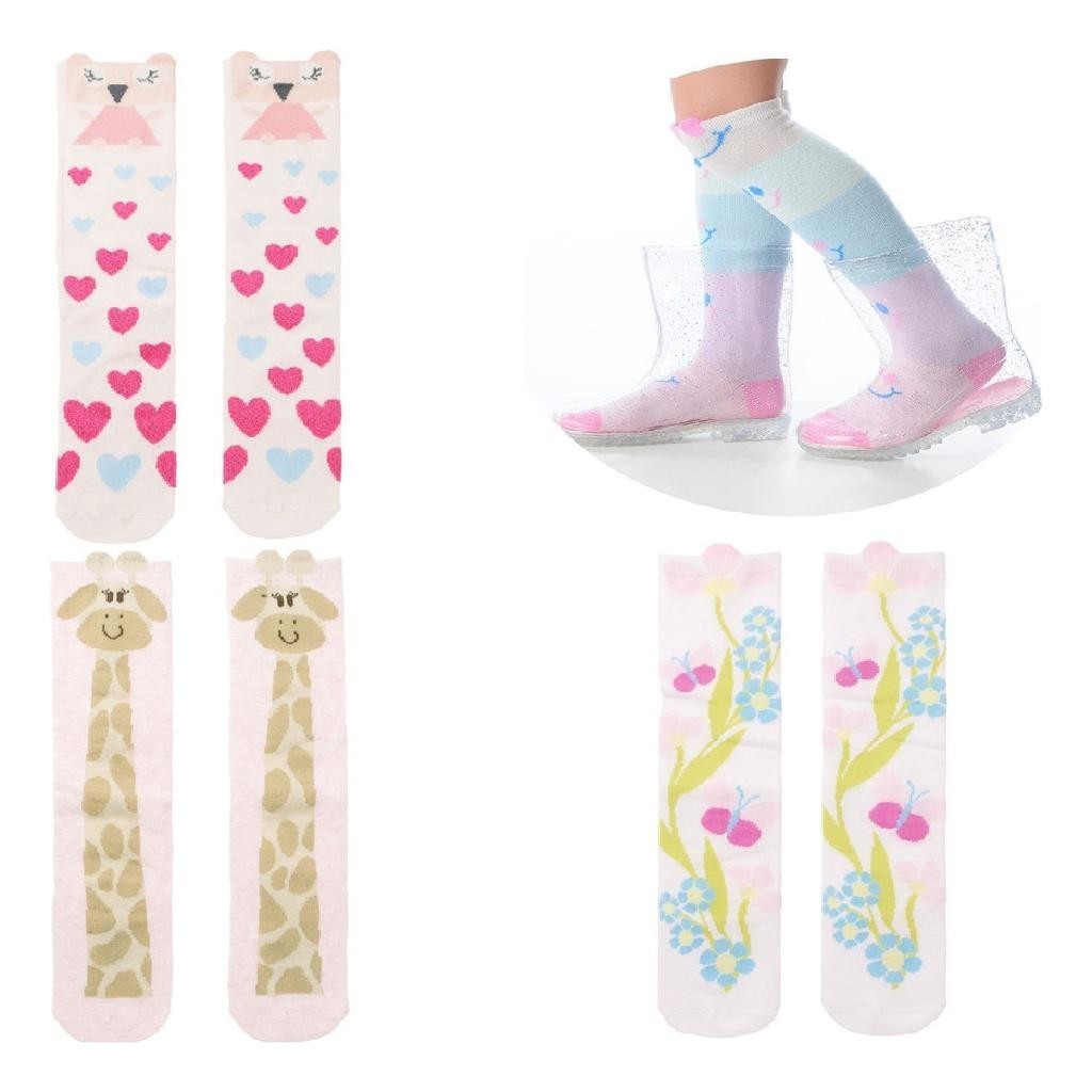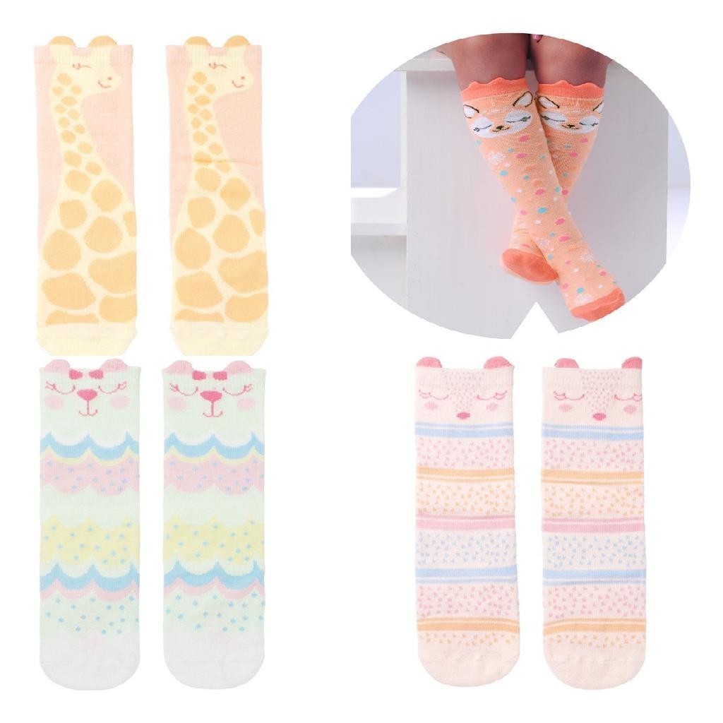 3 Pares Meia 3/4 Cano Alto galocha Infantil Menina Colorida Estampada Pimpolho