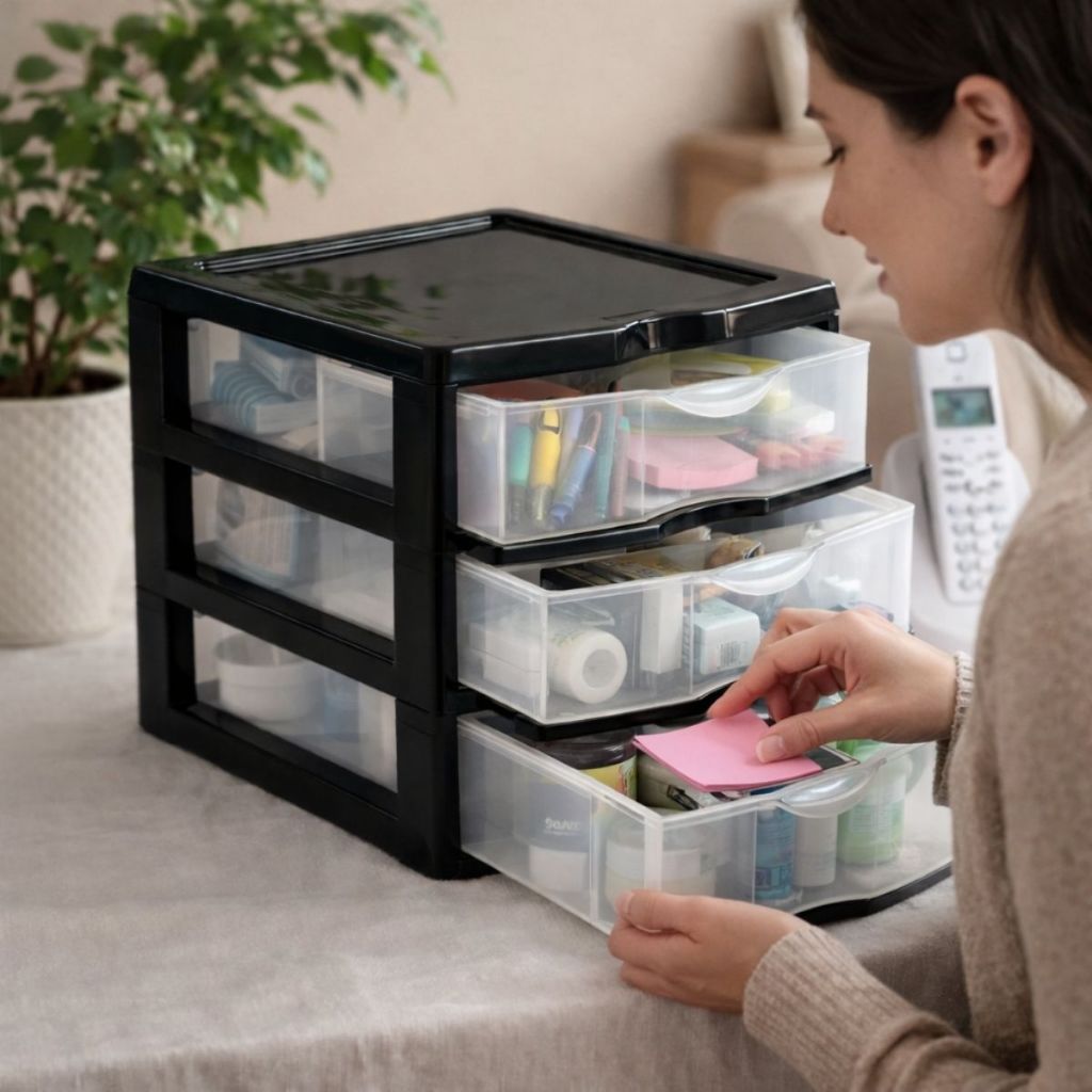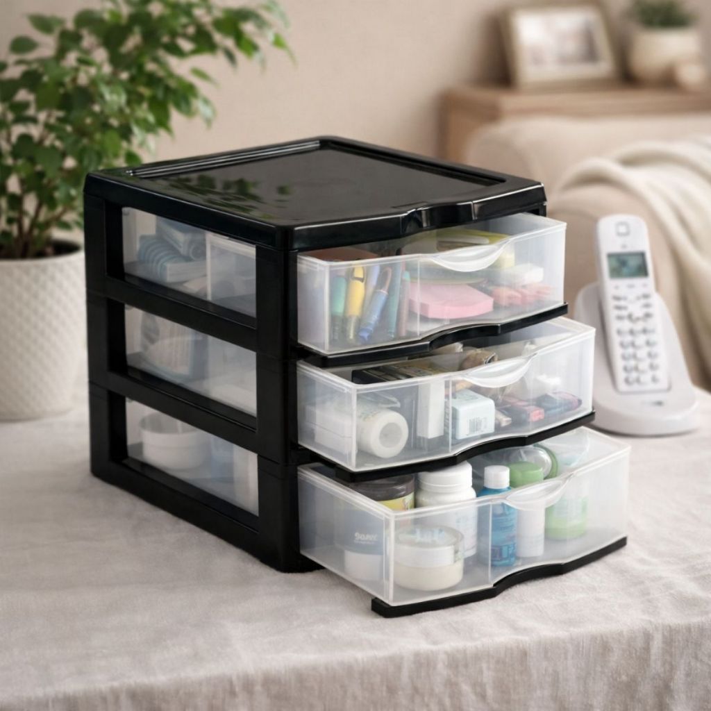 Gaveteiro Organizador com 3 ou 4 Gavetas Transparentes Modular organização de produtos escritório maquiagens ferramentas