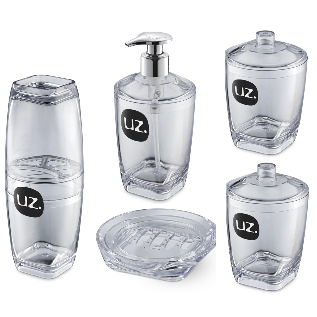Kit Lavabo 5 pçs Porta Escova Sabonete Líquido Translúcido