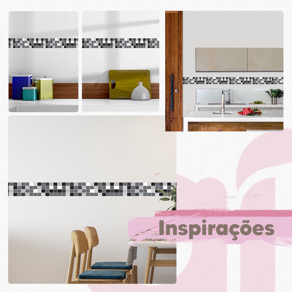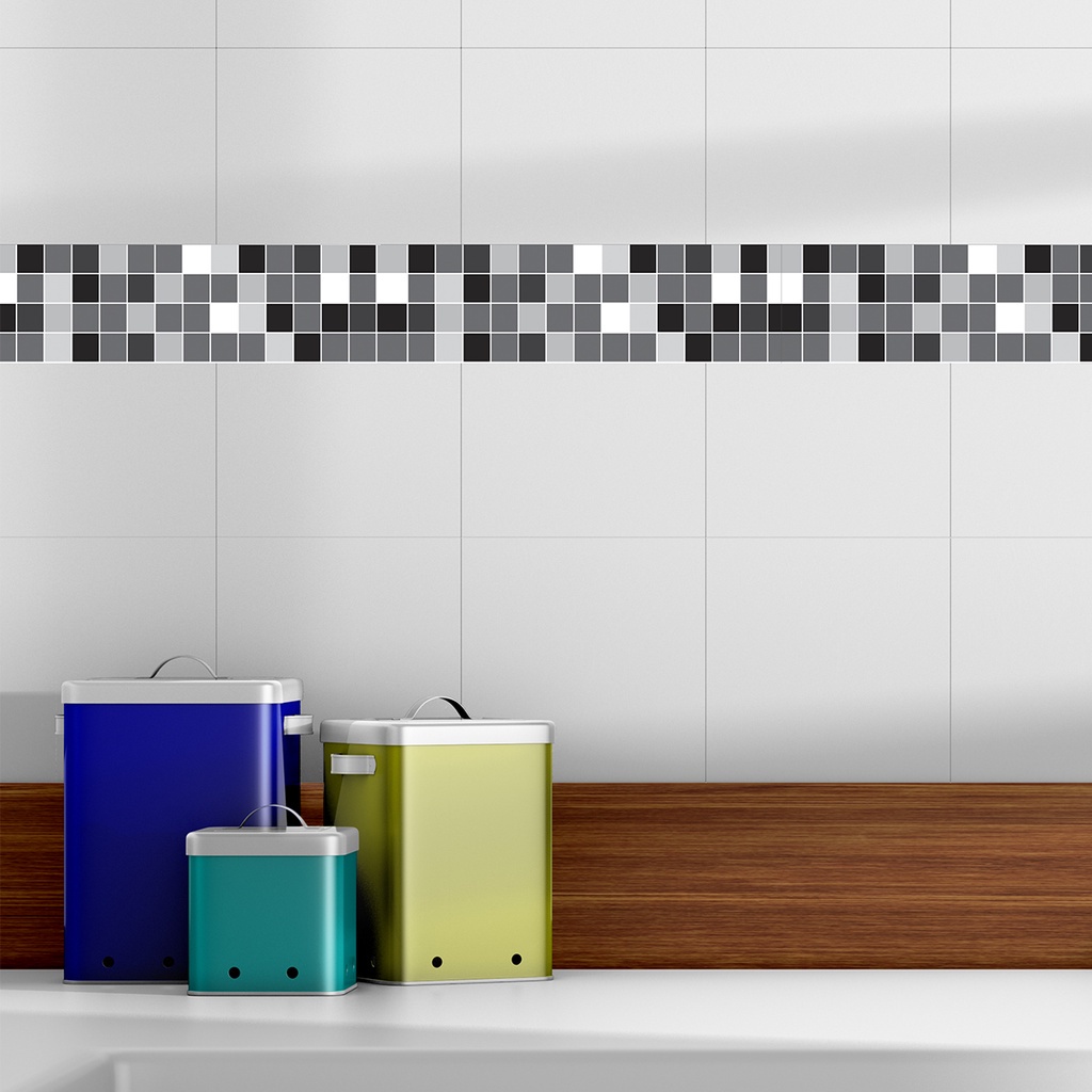 Faixa Adesiva Cozinha Banheiro Pastilha Tons Cinza Azulejo Geométrico Autocolante Vinílico 1m