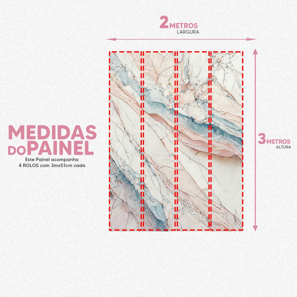 Papel de Parede Painel 3D Mármore Rosa e Azul Brilhoso 2M Auto Colante Lavável Revestimento