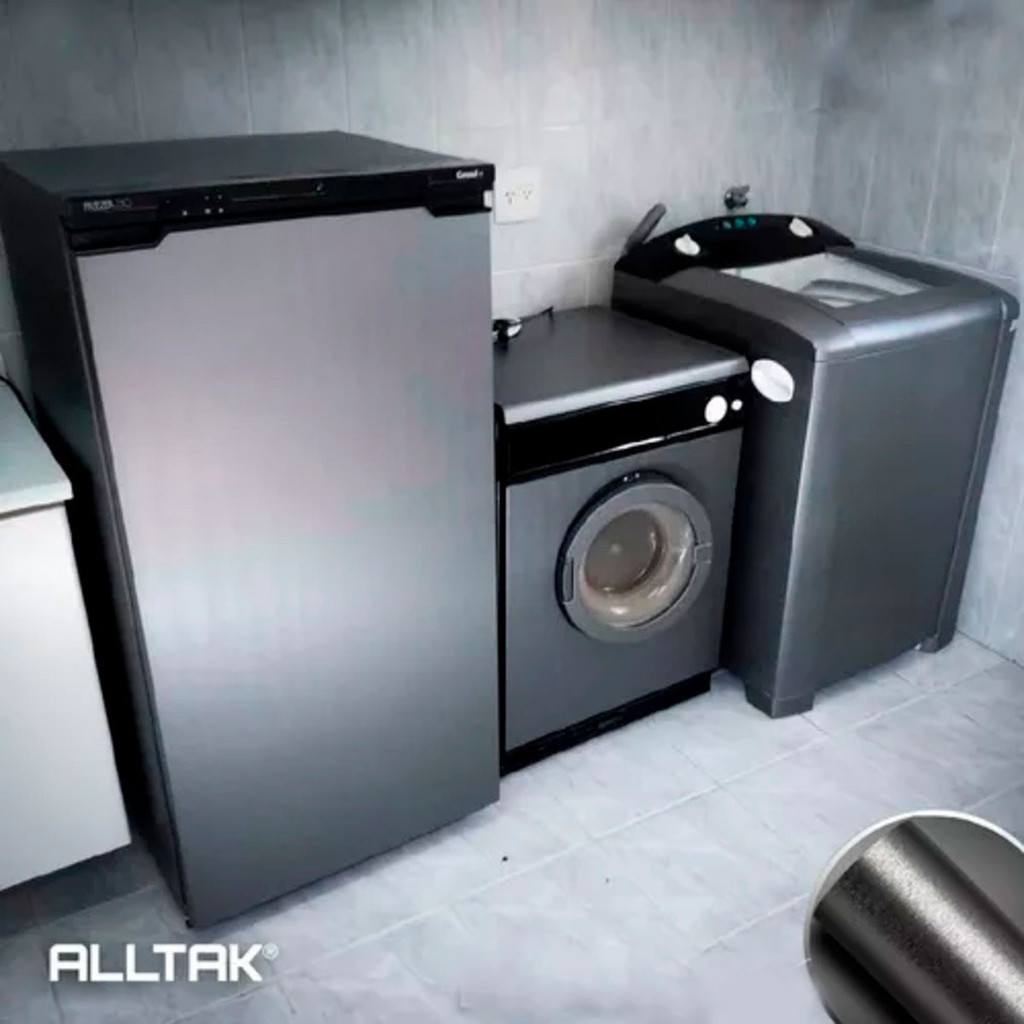 Adesivo Revestimento Vinil Aço Escovado Grafite Inox Texturizado Premium Geladeira Móveis 2,5mX50cm