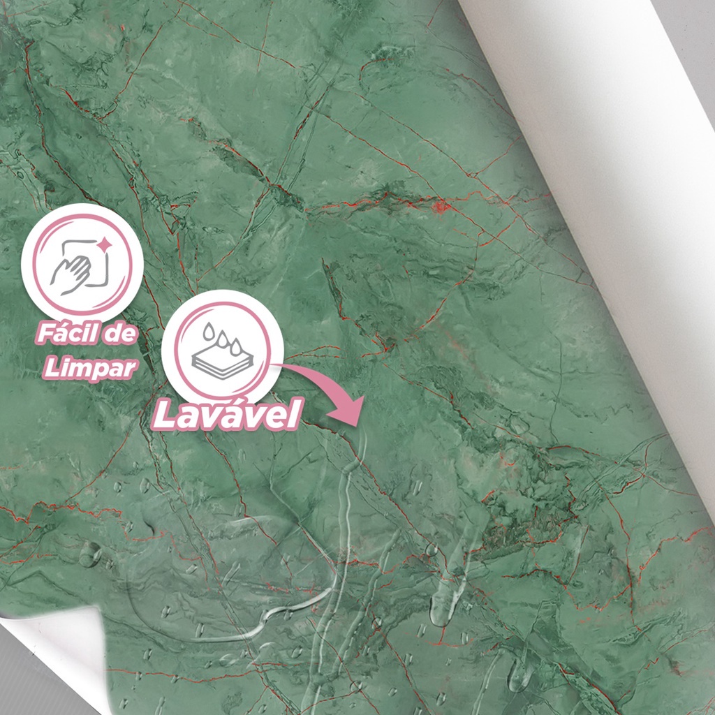Papel de Parede Painel 3D Mármore Carrara Verde Escuro 2M Revestimento Pedra Requinte Auto Colante