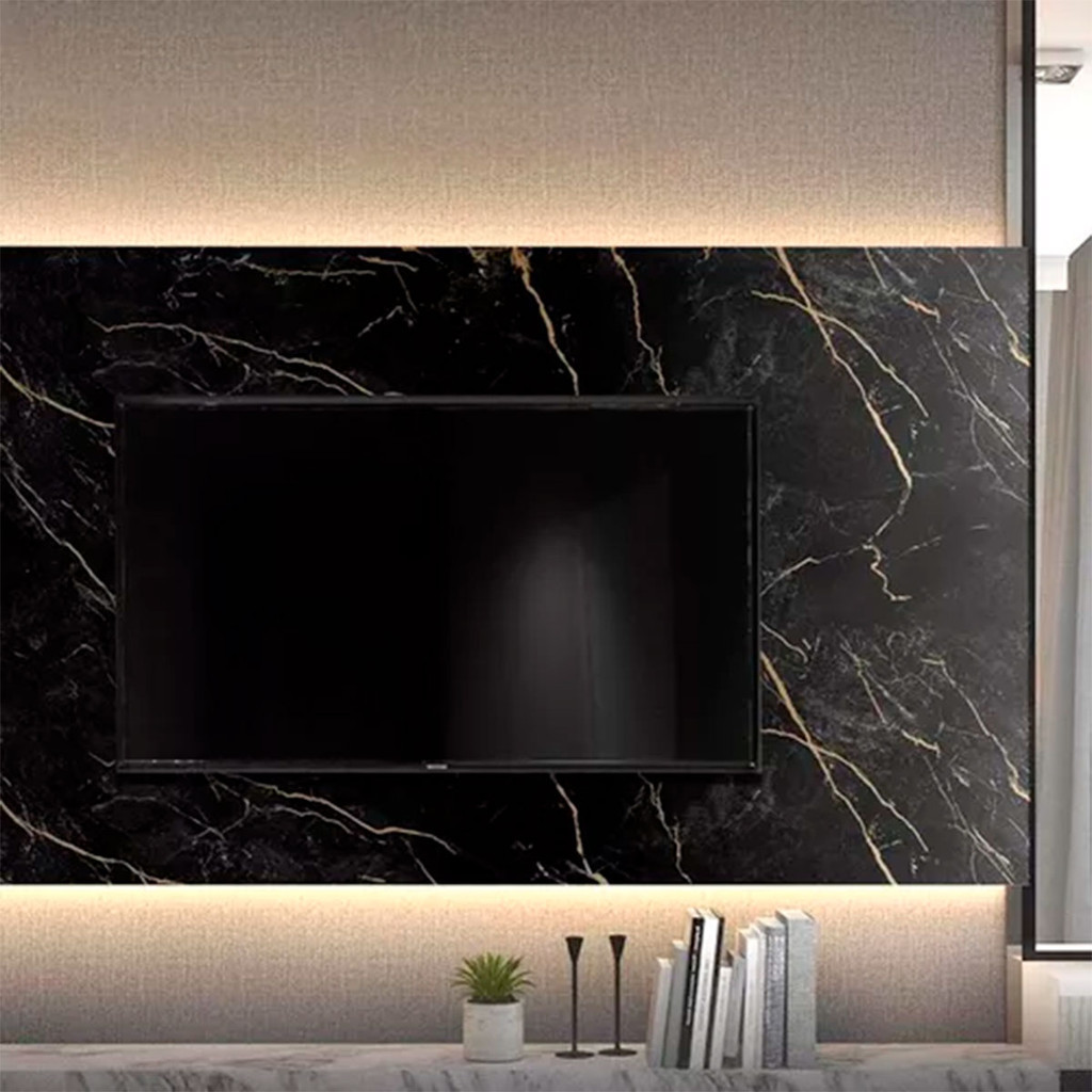 Adesivo Revestimento Mármore Preto Gold Impermeável Texturizado 2m X 60cm
