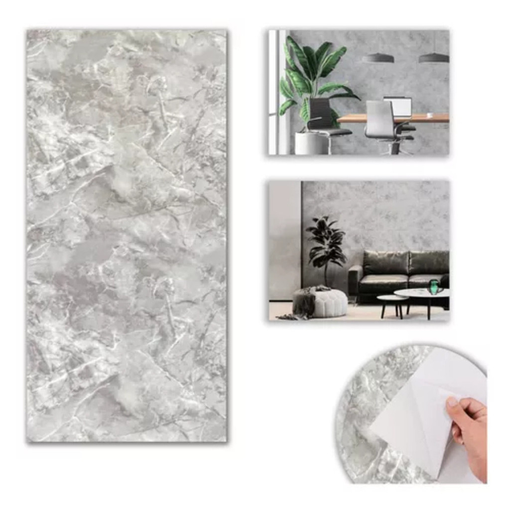 Placas Adesivas 3d Revestimento de Parede Auto Adesivo Mármore Cinza Lavável 30x60cm