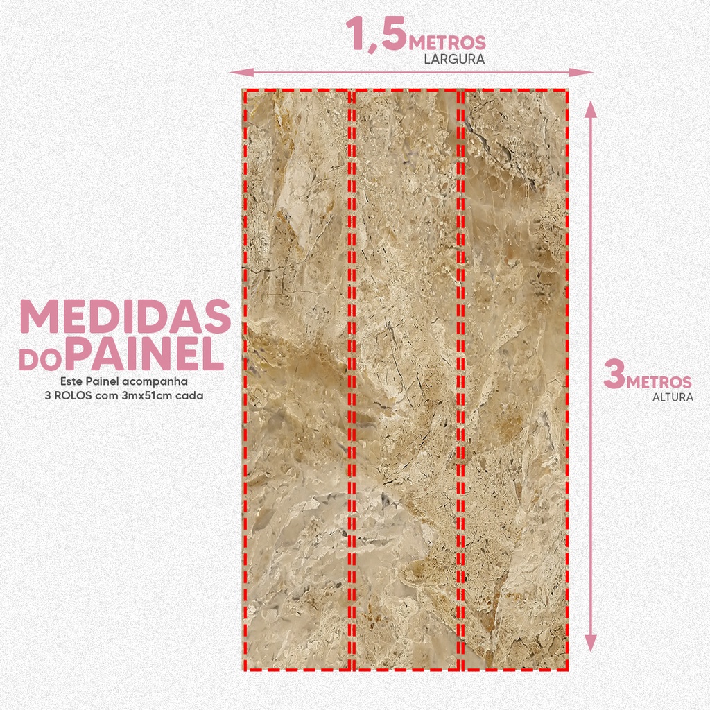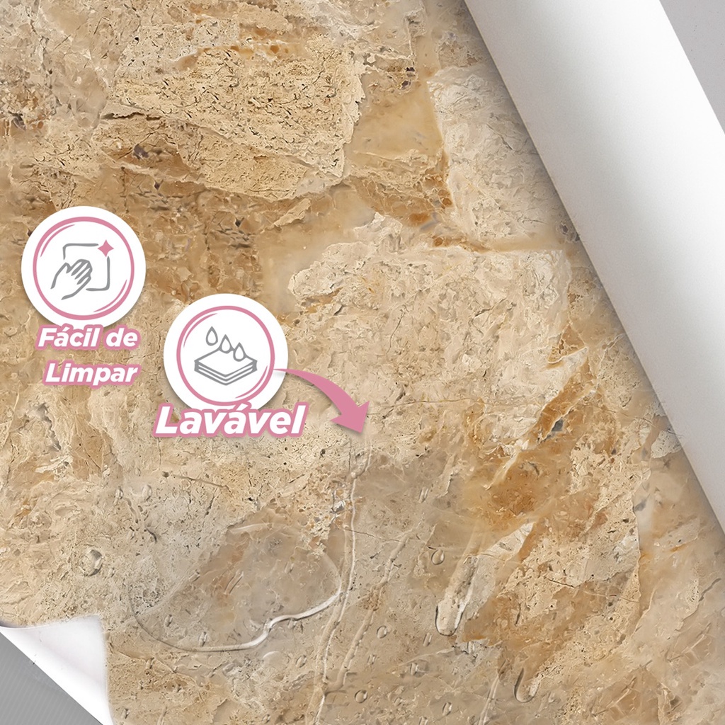 Papel de Parede Painel 3D Mármore Bege Bahia 1,5M Revestimento Auto Colante Marmorizado lavável