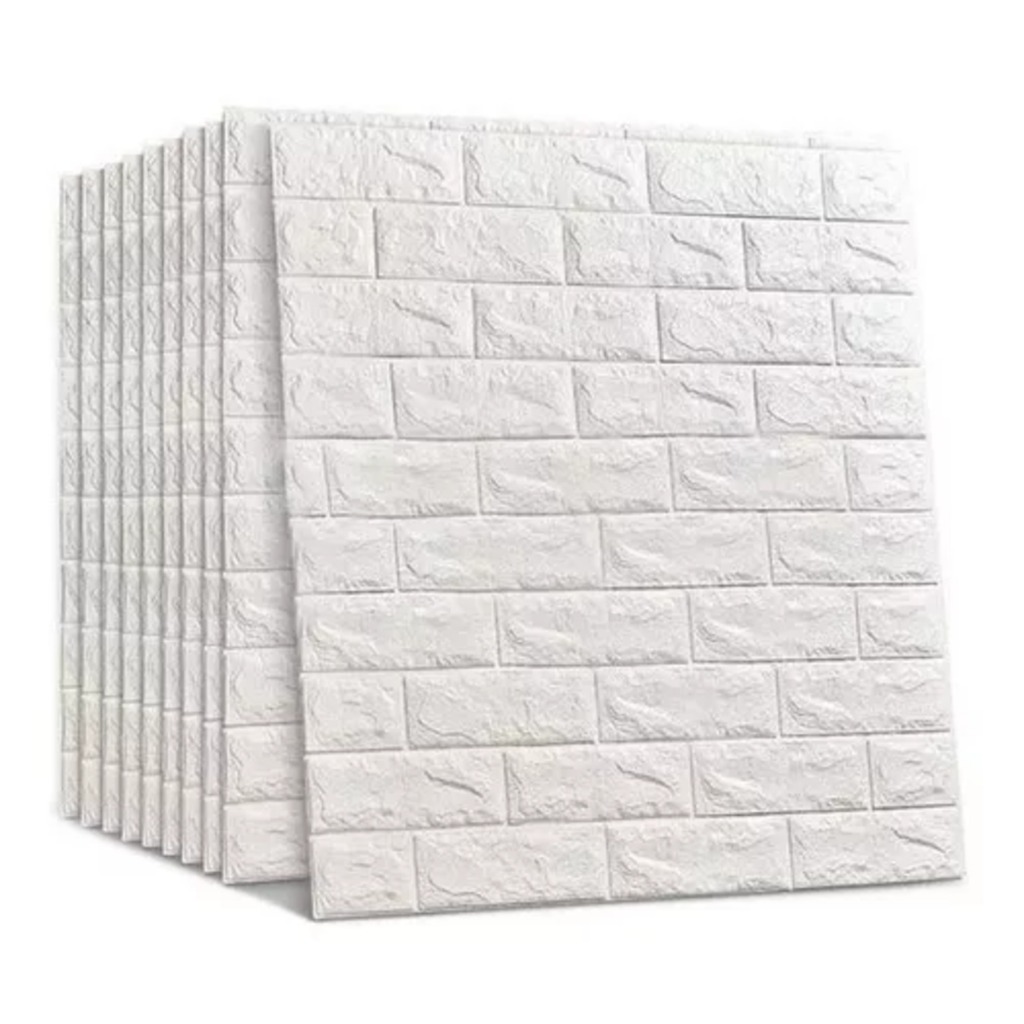 Kit 10 Placas Papel de Parede Auto Adesivo 3d Tijolinho Branco 70x77cm