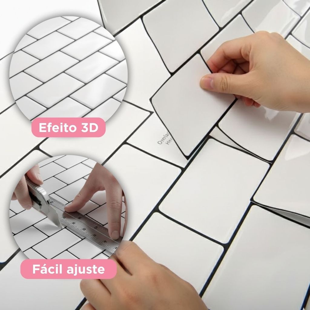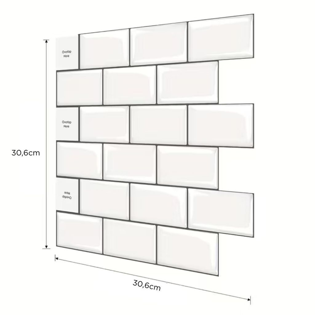 Kit 10 Pastilha Adesiva Resinada Tijolinho Branco 3d Azulejo Cozinha Banheiro