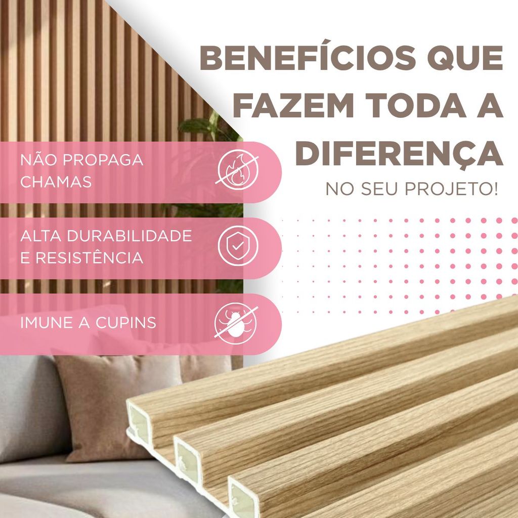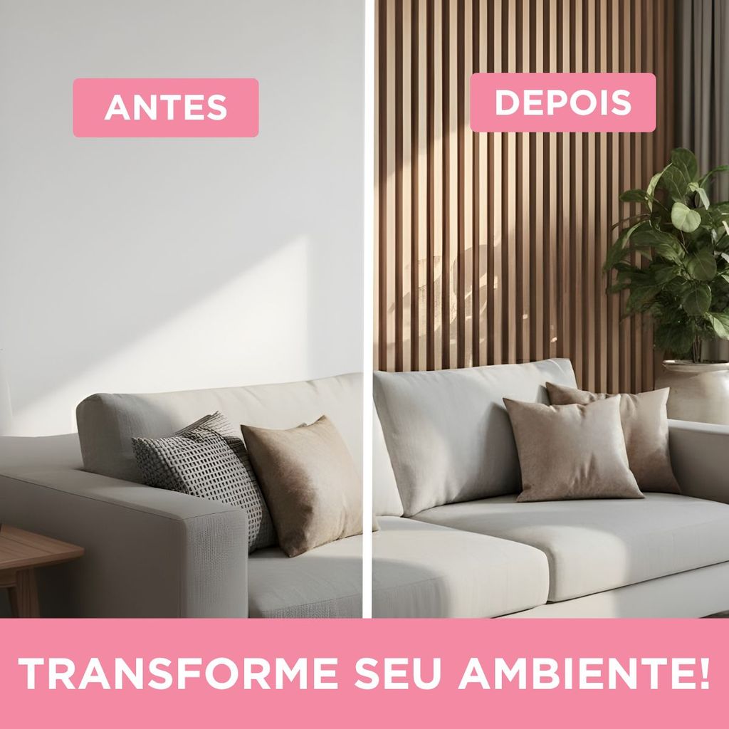 Kit 18 Placas Painel Ripado Carvalho Decorativo 45x16,9 WPC Revestimento Parede Sala Quarto
