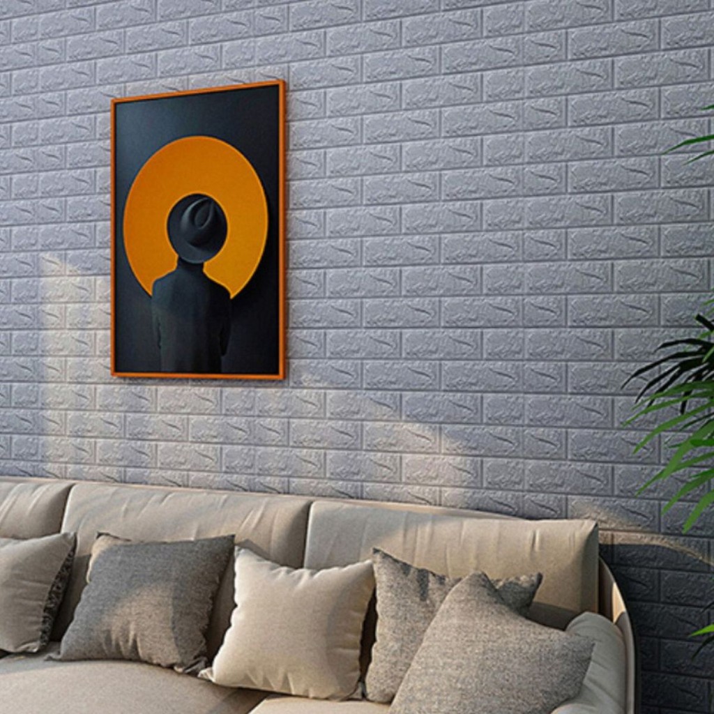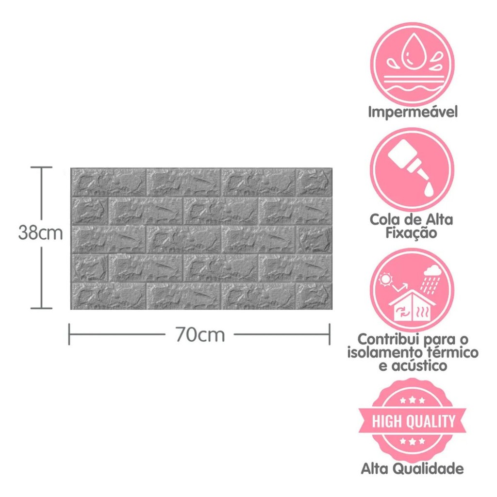 Kit 10 Placas 3D Tijolo Cinza 70x38 Adesivo Autocolante Decoração Quarto Sala Banheiro