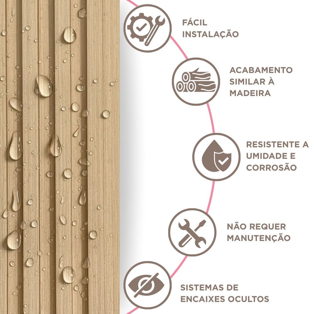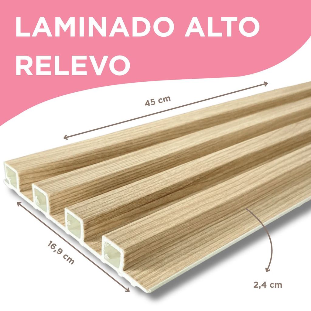 Kit 48 Placas Painel Ripado Carvalho Decorativo 45x16,9 WPC Revestimento Parede Sala Quarto