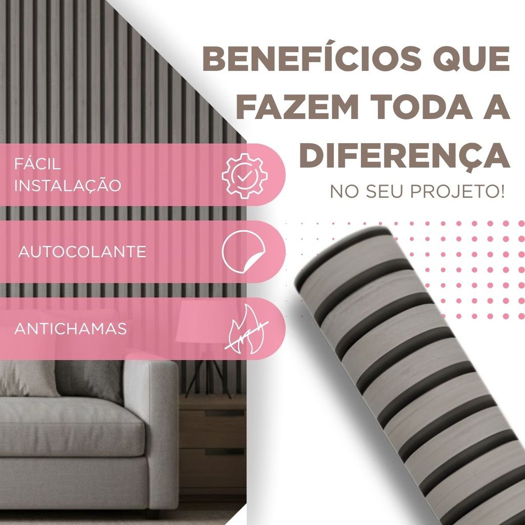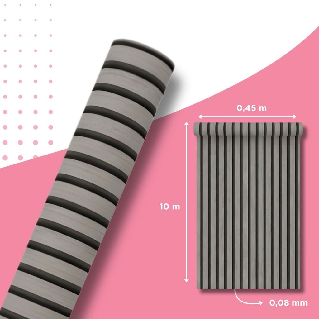 Papel De Parede Ripado Cinza Madeira 10m x 45cm Lavável Autocolante Efeito Painel Moderno