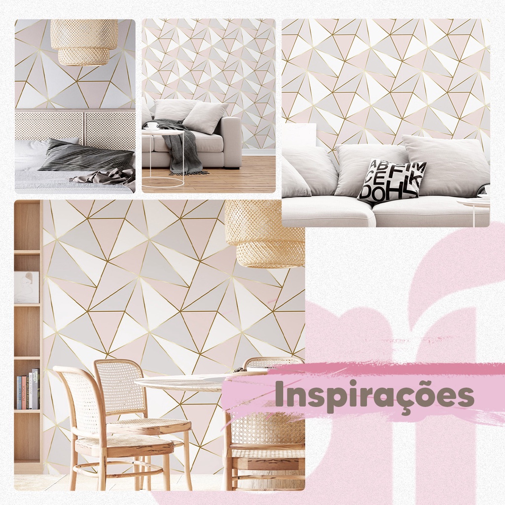 Papel De Parede 3m Cinza Rosê Decor Liso Fio Golde Geométrico AutoColante Adesivo Quarto Cozinha