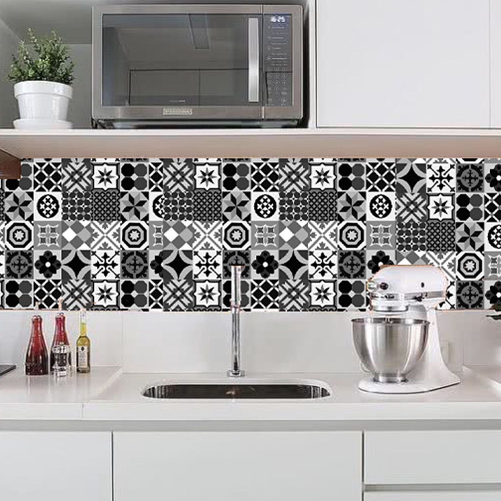 Papel De Parede Cozinha Azulejo Português Lavável 3M Auto Adesivo Preto Dark Geométrico Banheiro