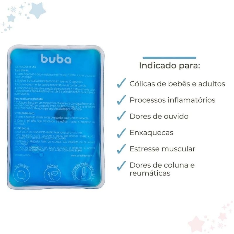 Bolsa Térmica em gel aquecimento instantâneo em Um click alívio cólica e dores Buba